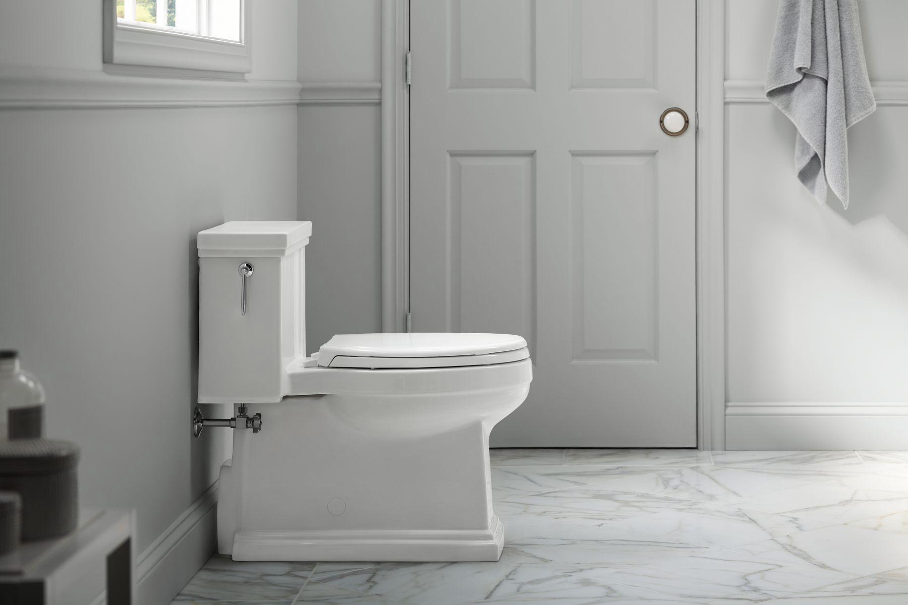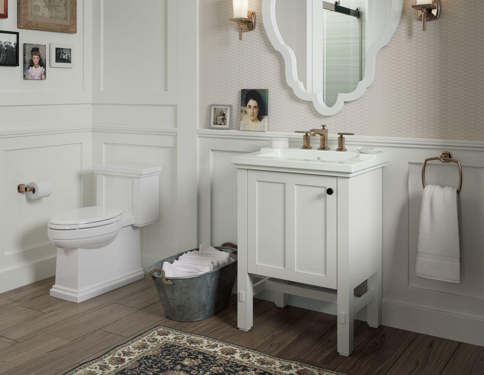 The elegant simplicity of Shaker-style furniture inspires the edgy, neo-traditional design of the Tresham collection. The Tresham Comfort-Height one-piece toilet is accented by an elegant trim that recalls architectural molding and offers an eclectic twist on classic Americana traditions. Complements the Tresham collection as well as a variety of styles from classic to modern.