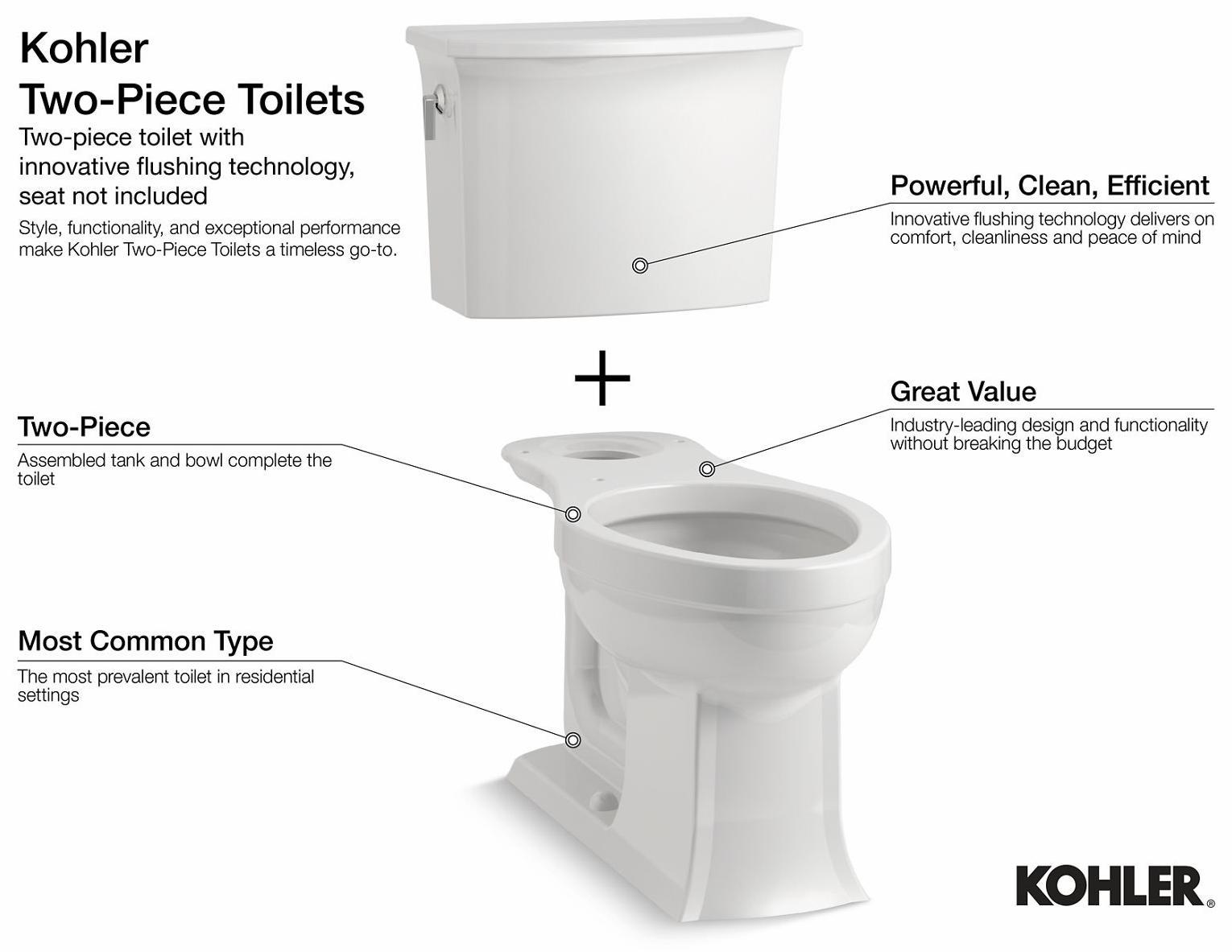 The elegant simplicity of Shaker-style furniture inspires the edgy, neo-traditional design of the Tresham collection. The Tresham Comfort-Height(R) two-piece elongated toilet is accented by an elegant trim that recalls architectural molding and offers an eclectic twist on classic Americana traditions. Complements the Tresham collection as well as a variety of styles from classic to modern.