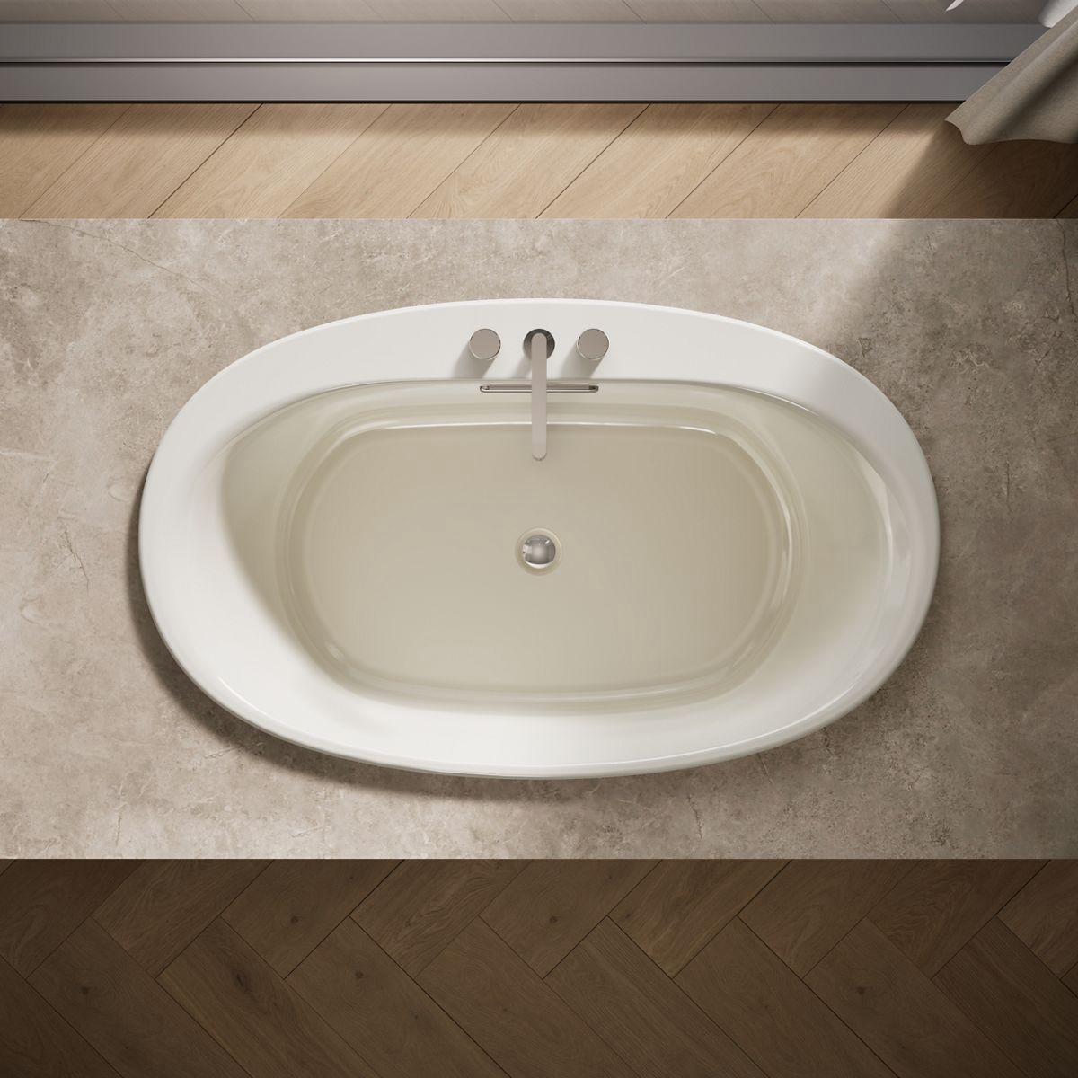 Streamlined for simplicity, the Underscore oval bath exudes refined style with contemporary flair. A slotted overflow drain allows for a luxuriously deep bath as you relax against the comfortable sloped backrest.