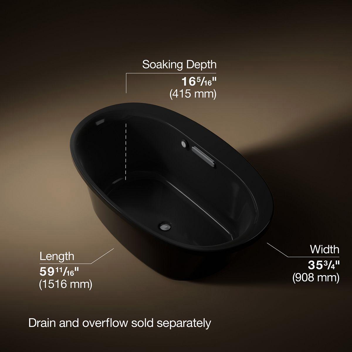 - Slotted overflow allows for deep soaking.