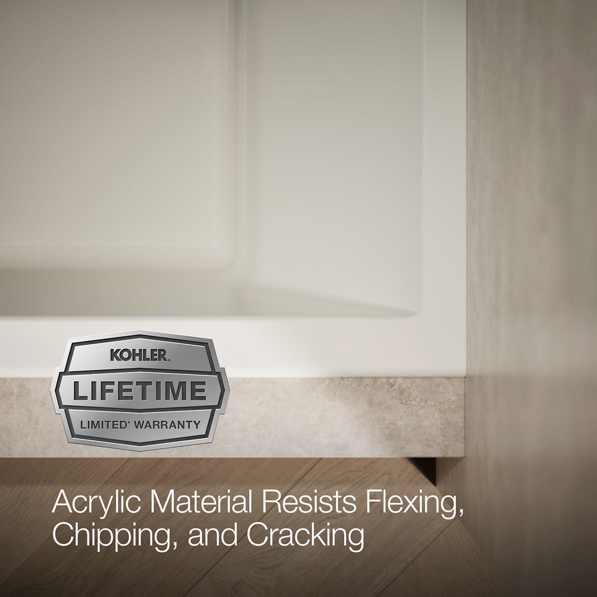 - Integral flange helps prevent water from seeping behind wall and simplifies alcove installation.