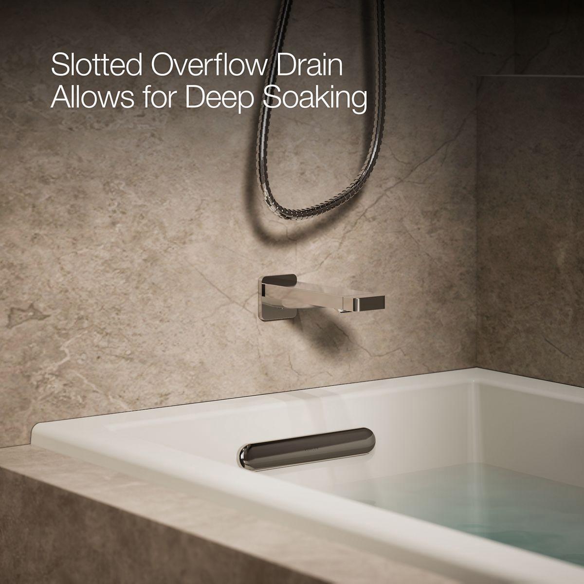 - Slotted overflow allows for deep soaking.