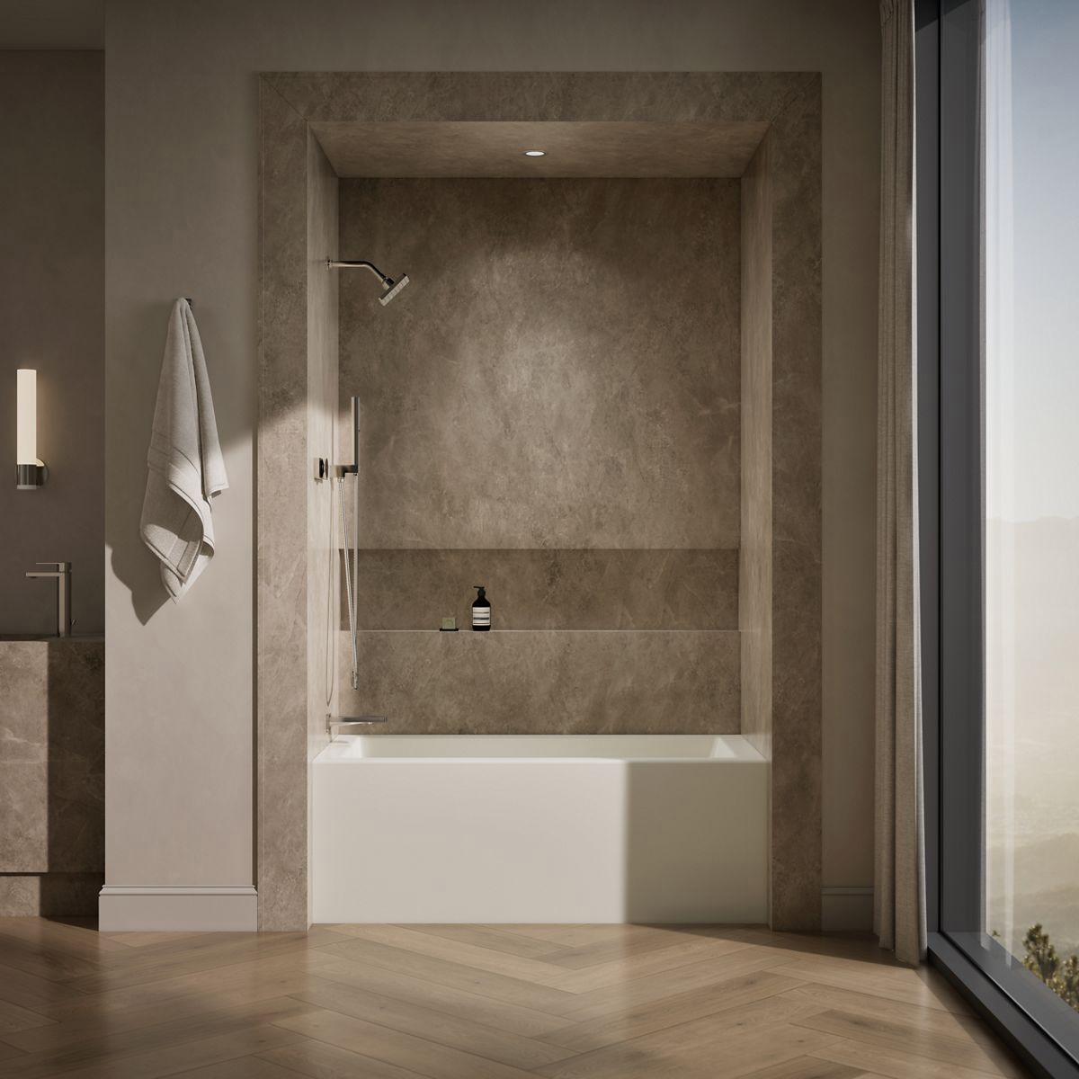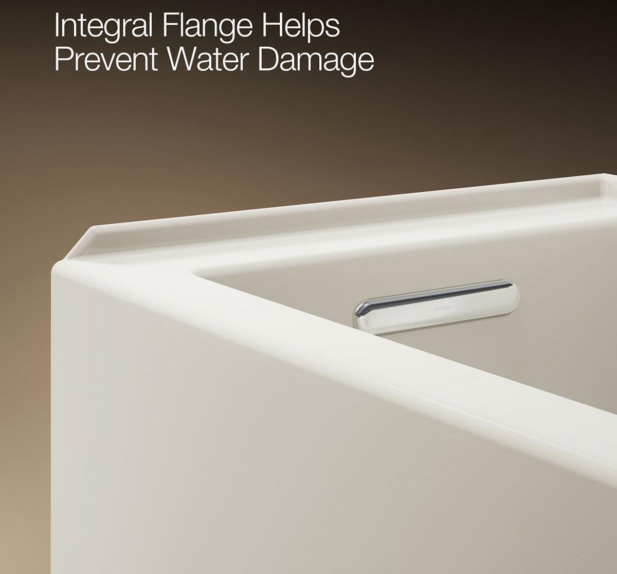 - Integral flange helps prevent water from seeping behind wall and simplifies alcove installation.