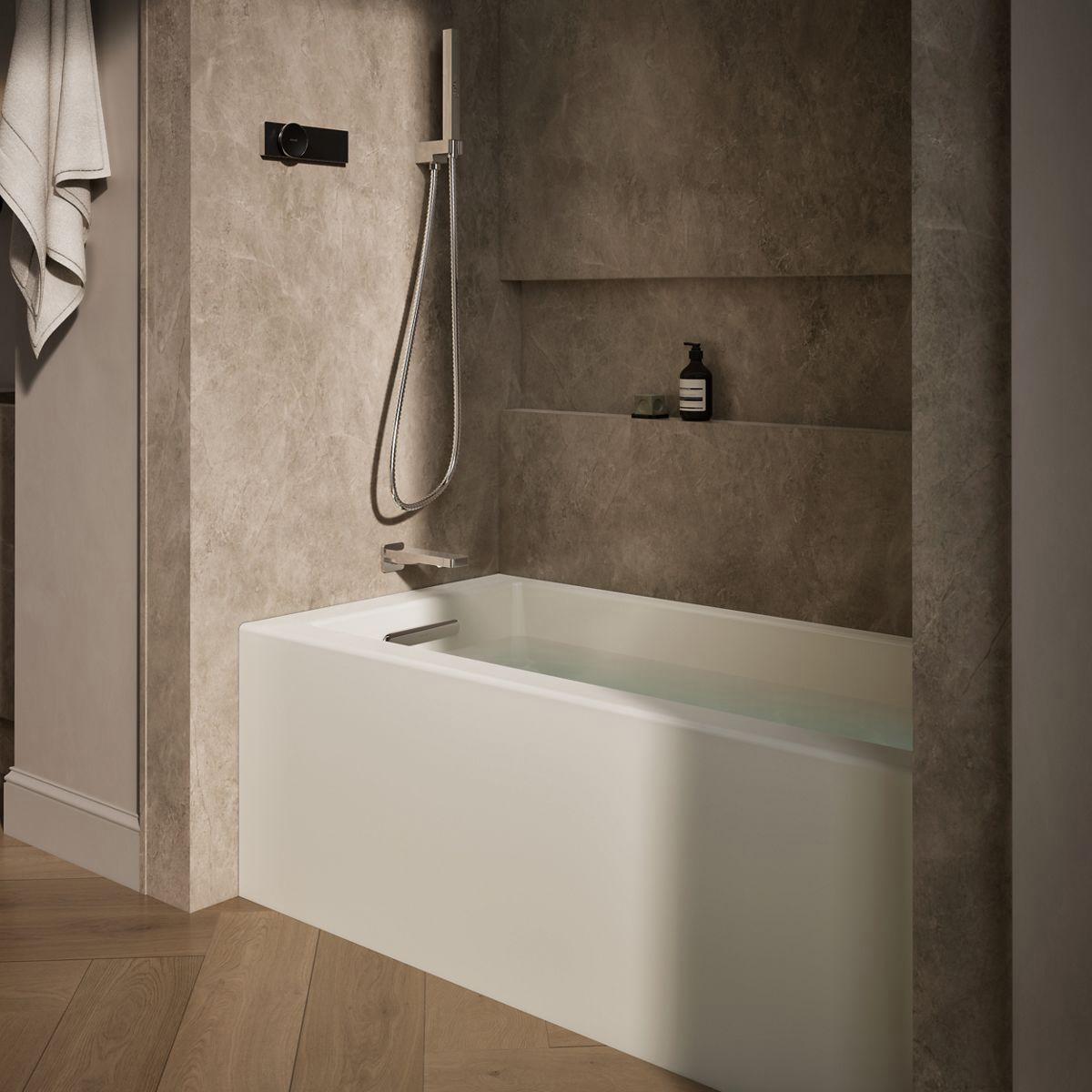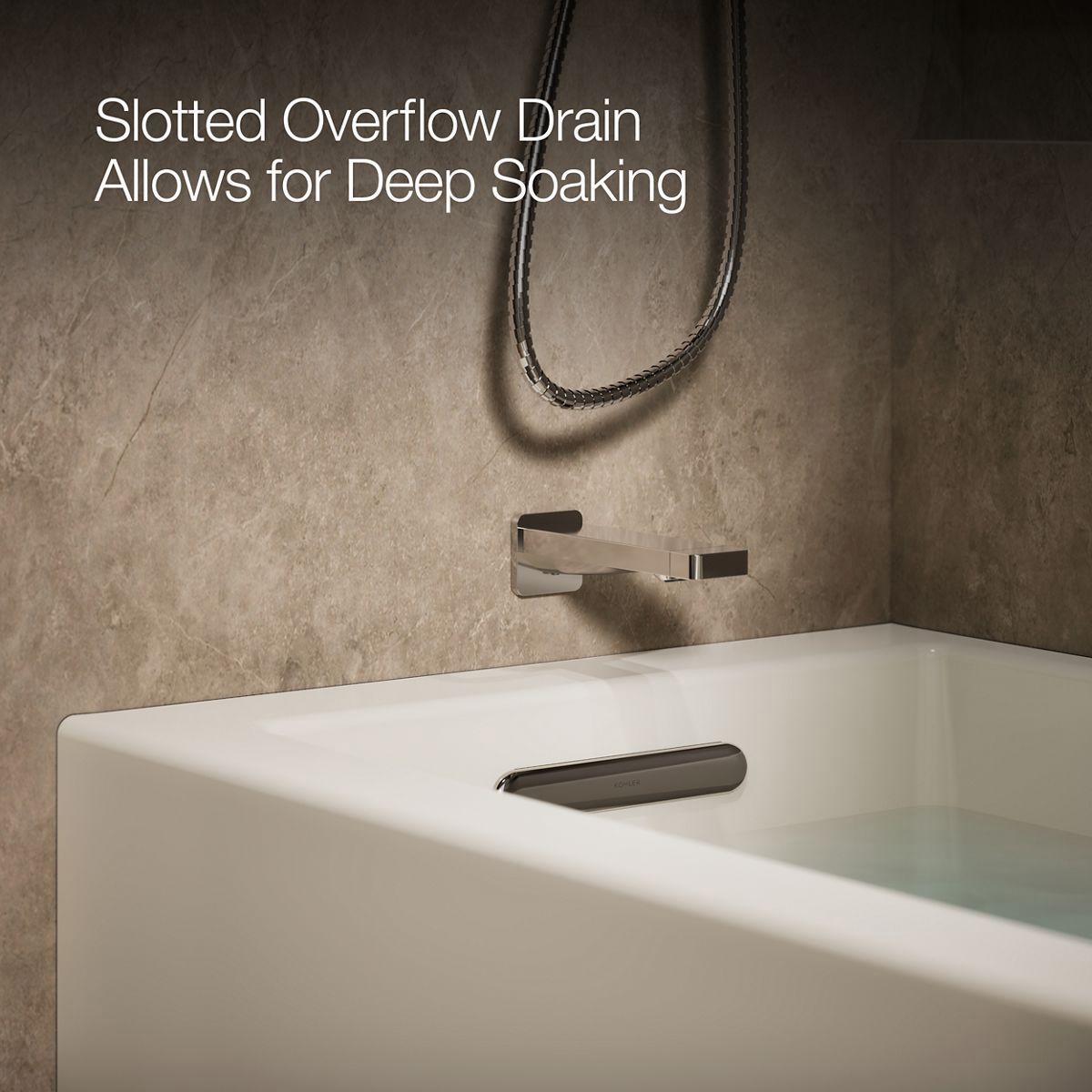 Featuring a simple, crisp design, this Underscore alcove bath exudes refined style with contemporary flair. A slotted overflow drain allows for a luxuriously deep bath as you relax against the comfortable sloped backrest.
