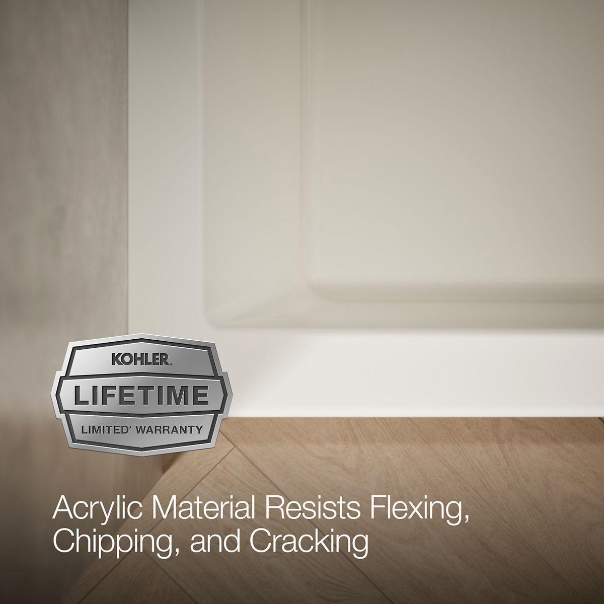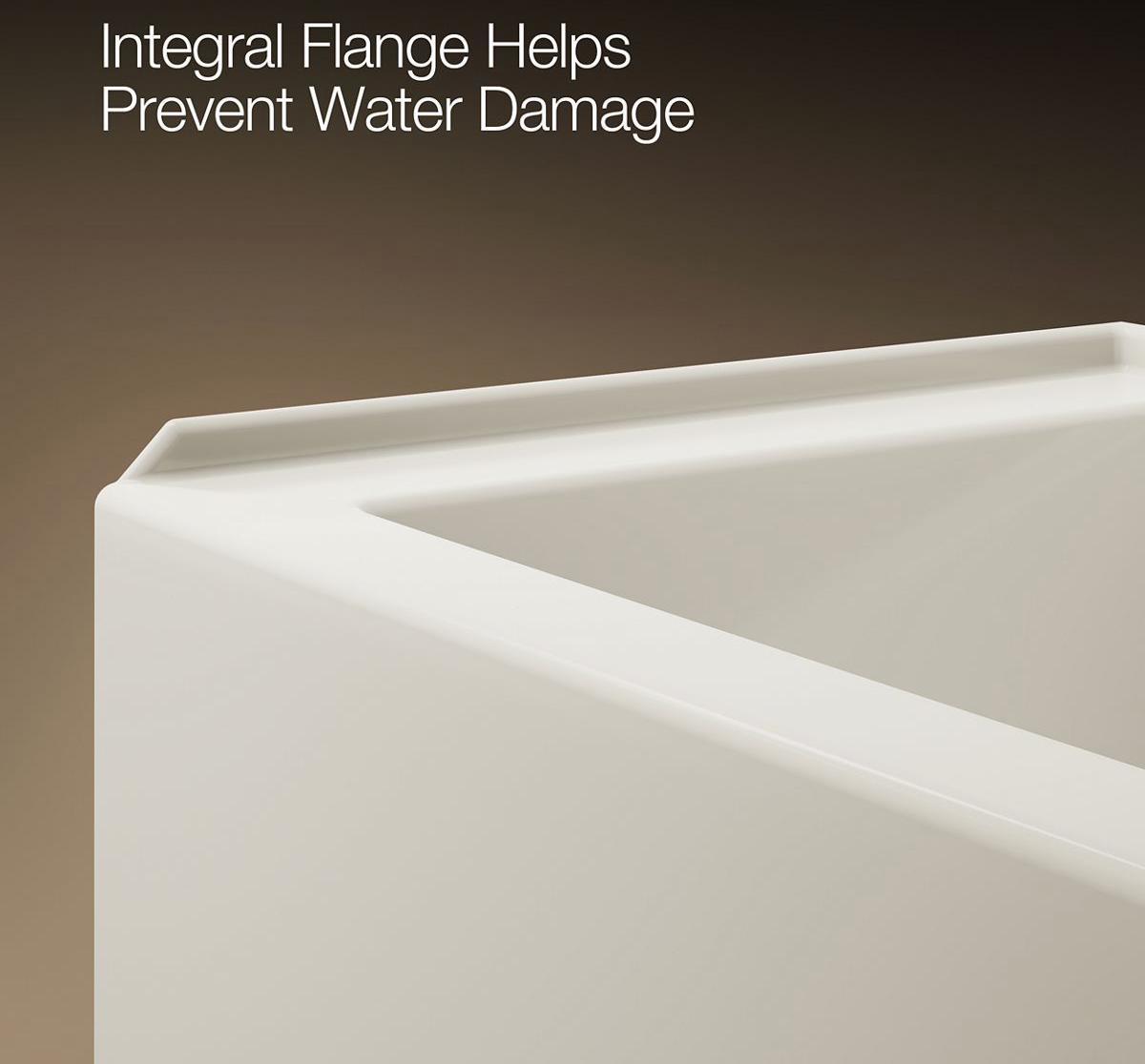 - Integral flange helps prevent water from seeping behind wall and simplifies alcove installation.