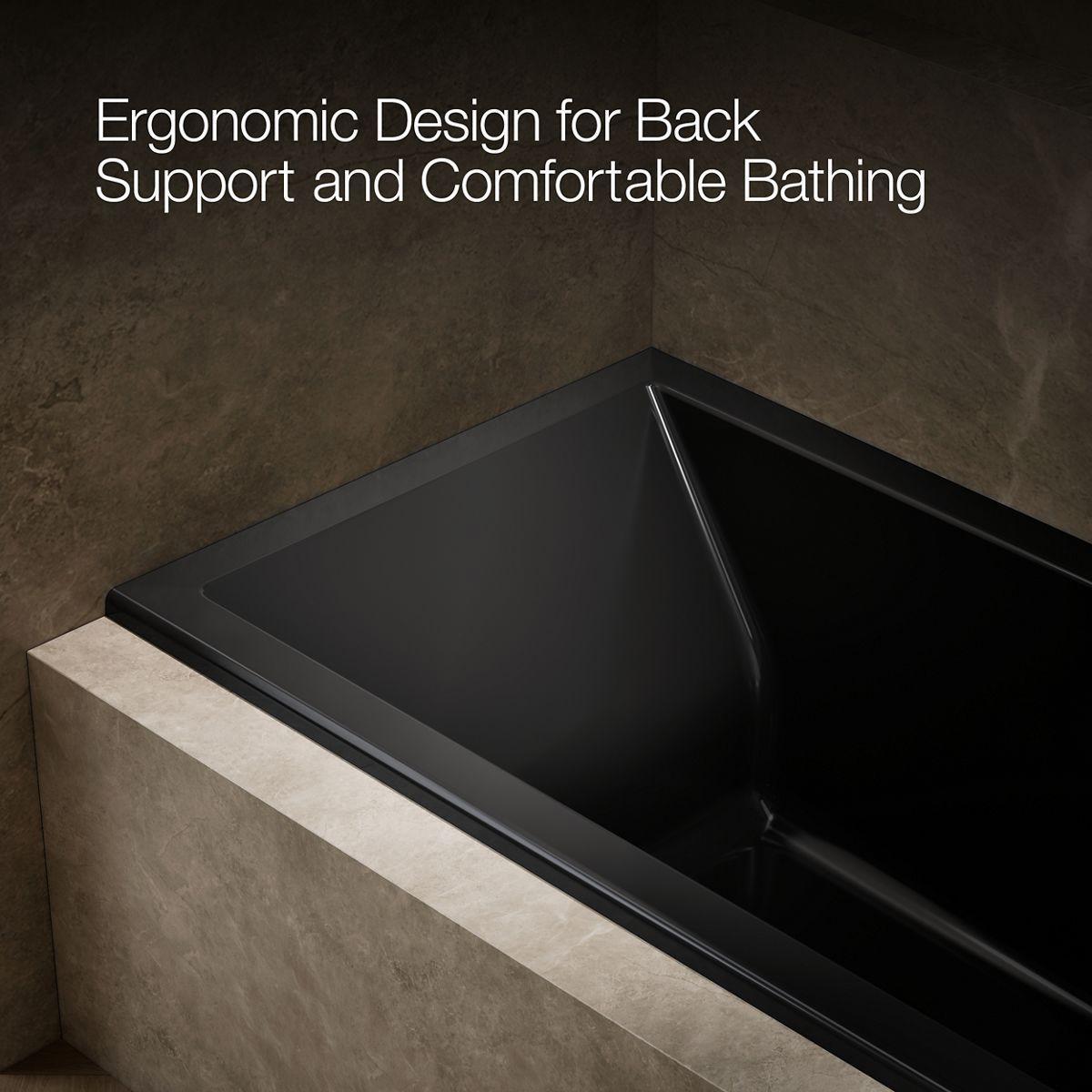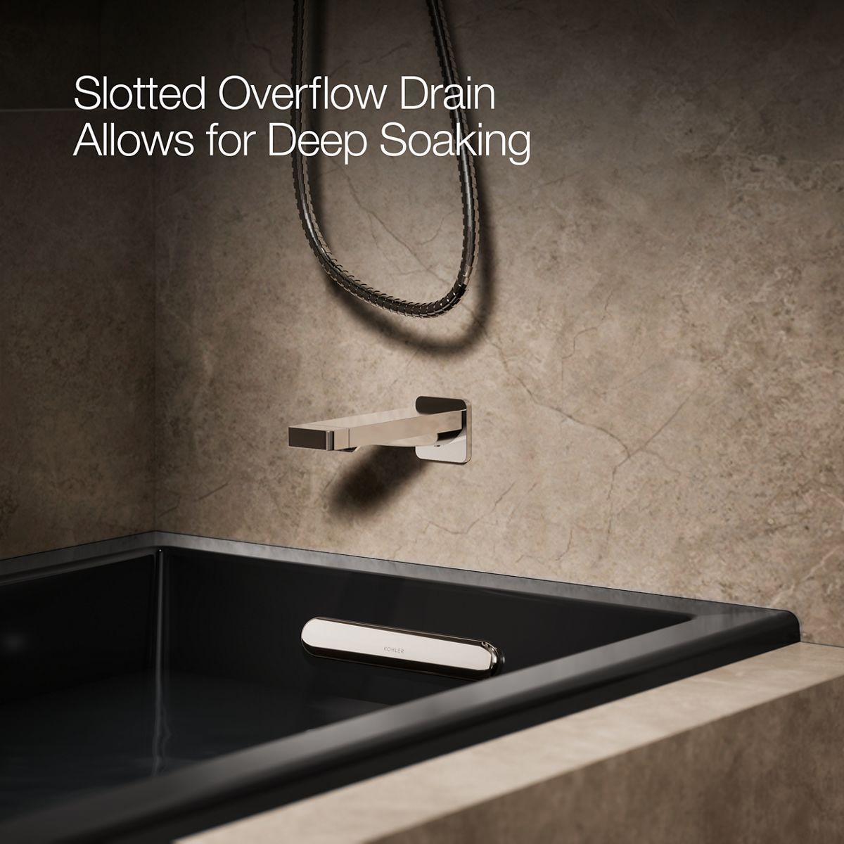 Streamlined for simplicity, this Underscore bath exudes refined style with contemporary flair. Its heated surface warms the back and neck with adjustable temperature settings to create a soothing, spa-like environment. A slotted overflow drain allows for a luxuriously deep bath as you relax against the comfortable sloped backrest.
