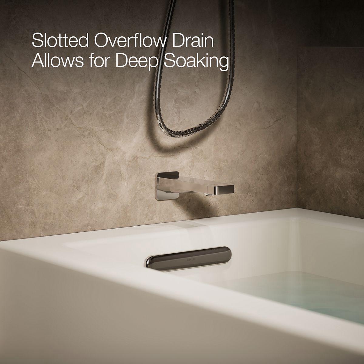 • Slotted overflow allows for deep soaking.