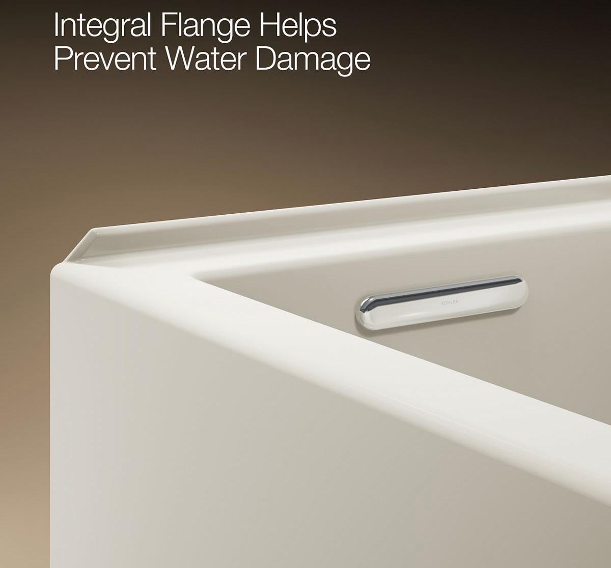 • Integral flange helps prevent water from seeping behind wall and simplifies alcove installation.