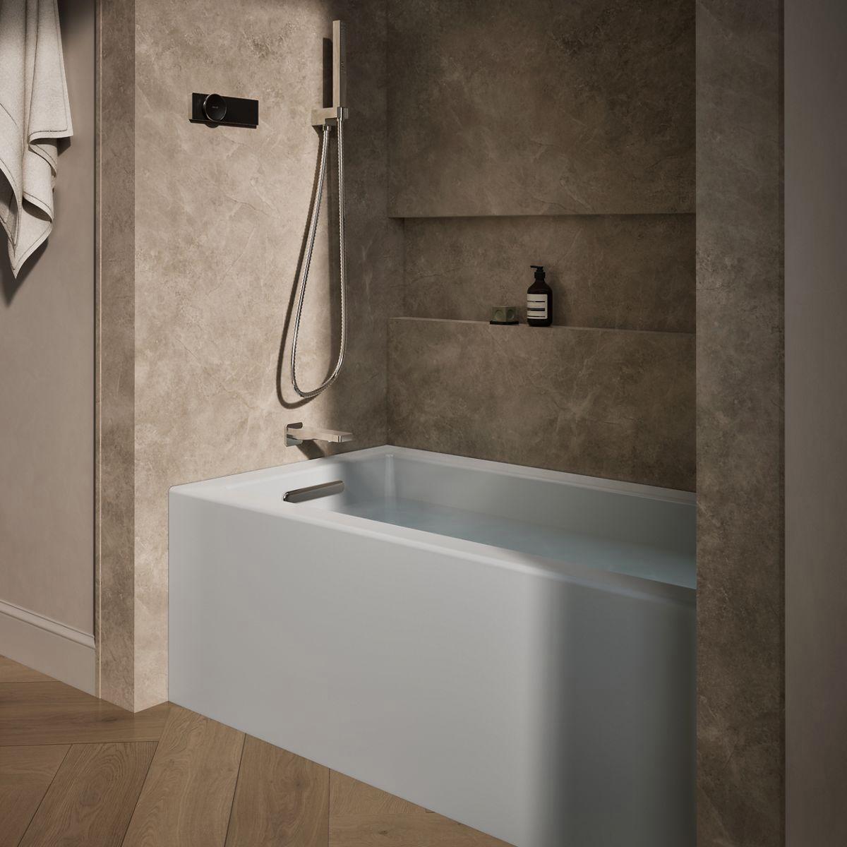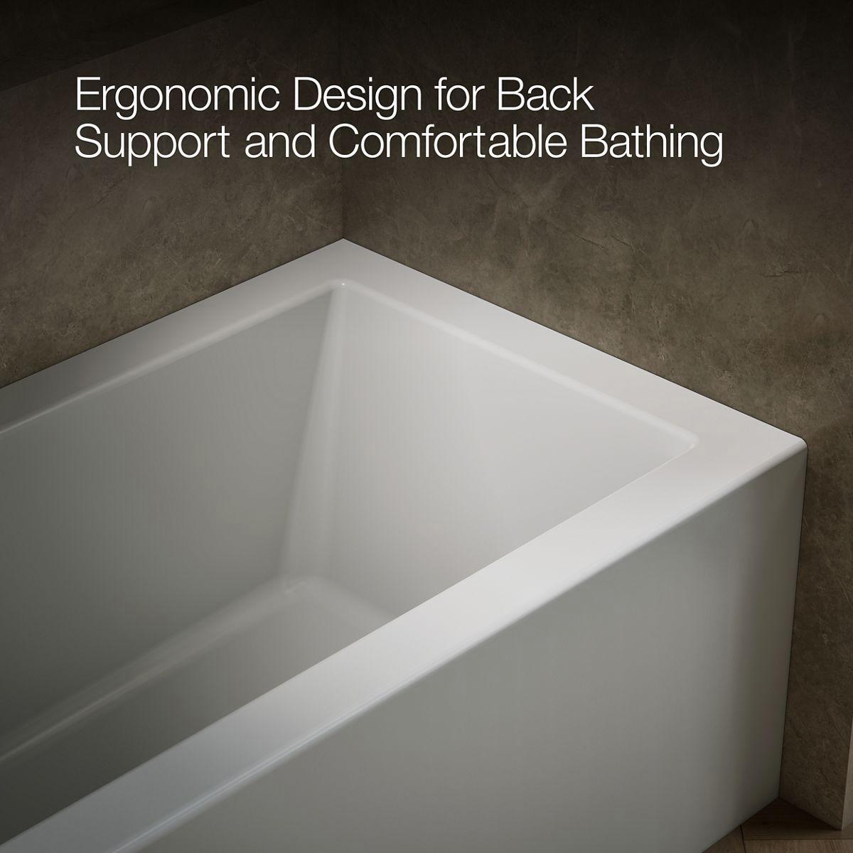 Featuring a simple, crisp design, this Underscore alcove bath exudes refined style with contemporary flair. A slotted overflow drain allows for a luxuriously deep bath as you relax against the comfortable sloped backrest.