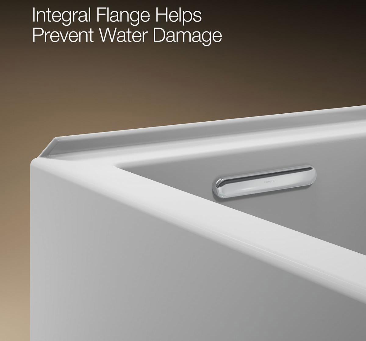 - Integral flange helps prevent water from seeping behind wall and simplifies alcove installation.
