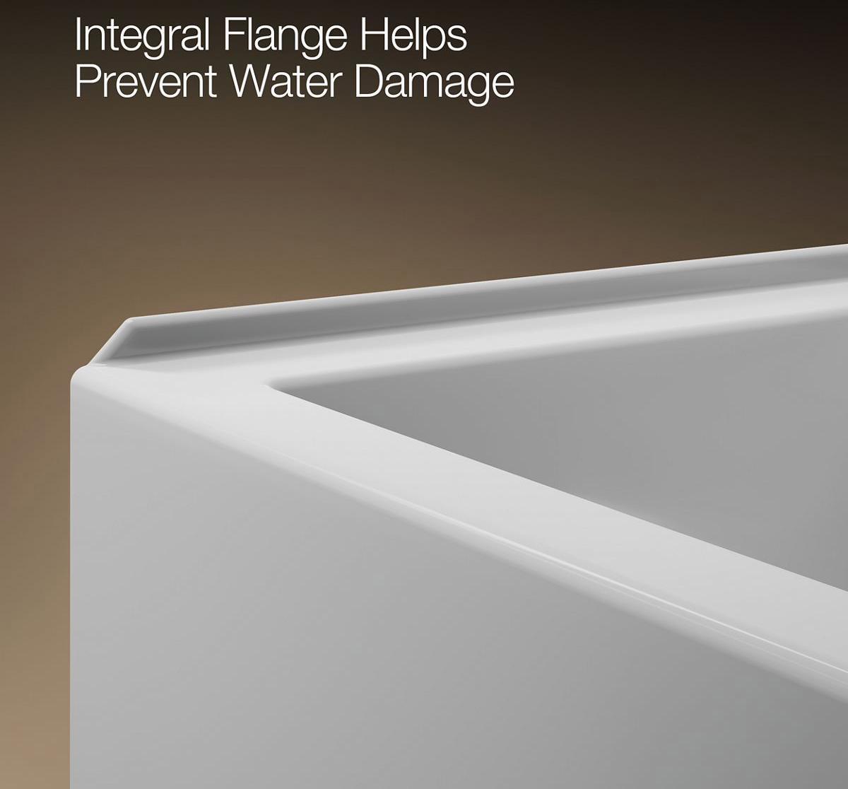 - Integral flange helps prevent water from seeping behind wall and simplifies alcove installation.