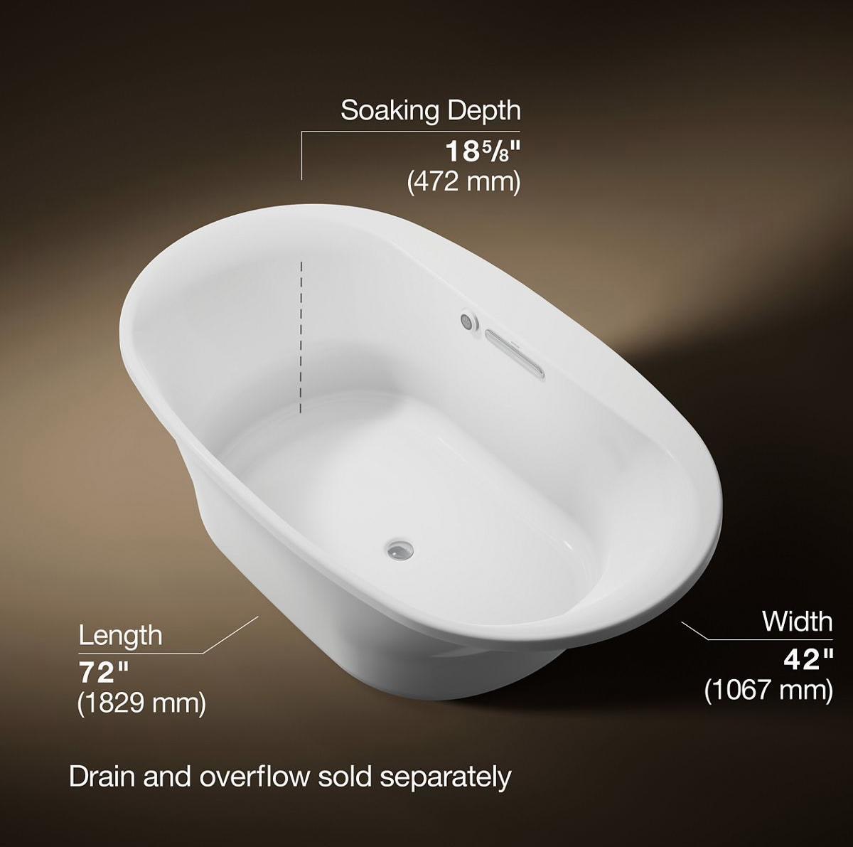 - Slotted overflow allows for deep soaking.