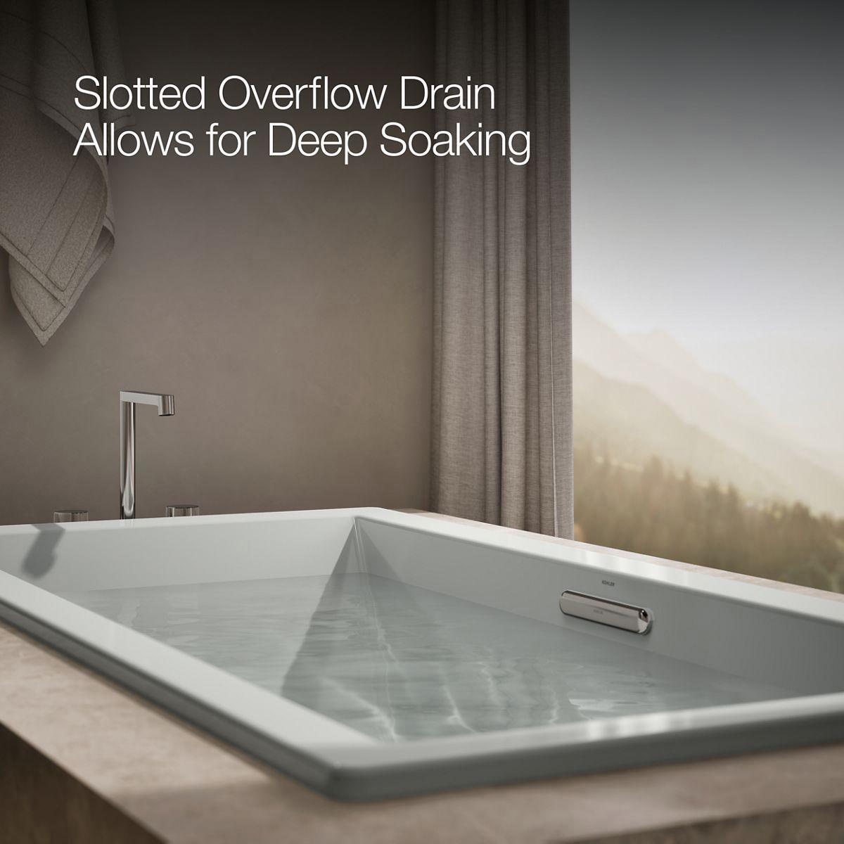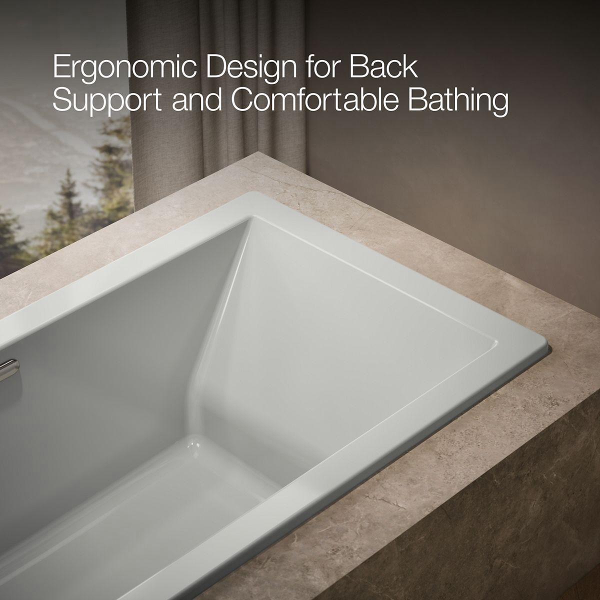 Streamlined for simplicity, the Underscore bath exudes refined style with contemporary flair that fits with a variety of decors. A slotted overflow drain allows for a luxuriously deep bath as you relax against the comfortable sloped backrest.