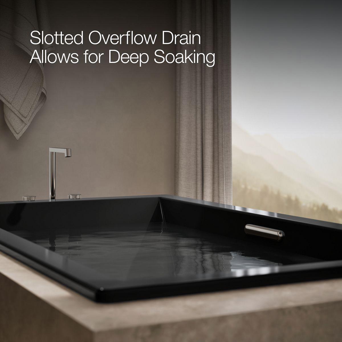 - Slotted overflow allows for deep soaking.