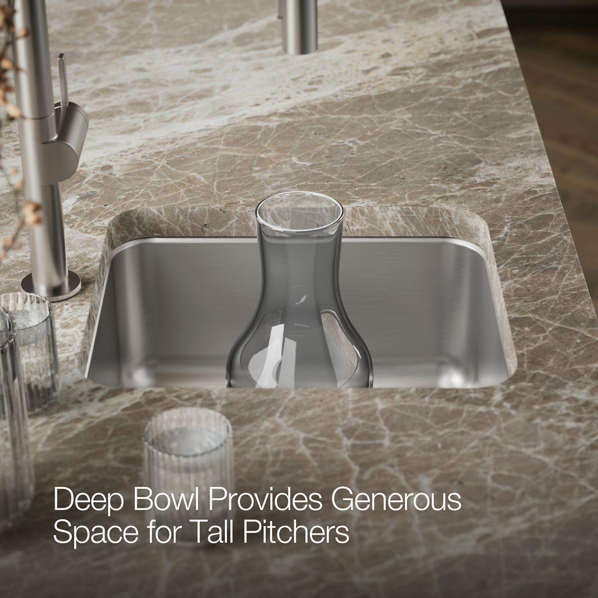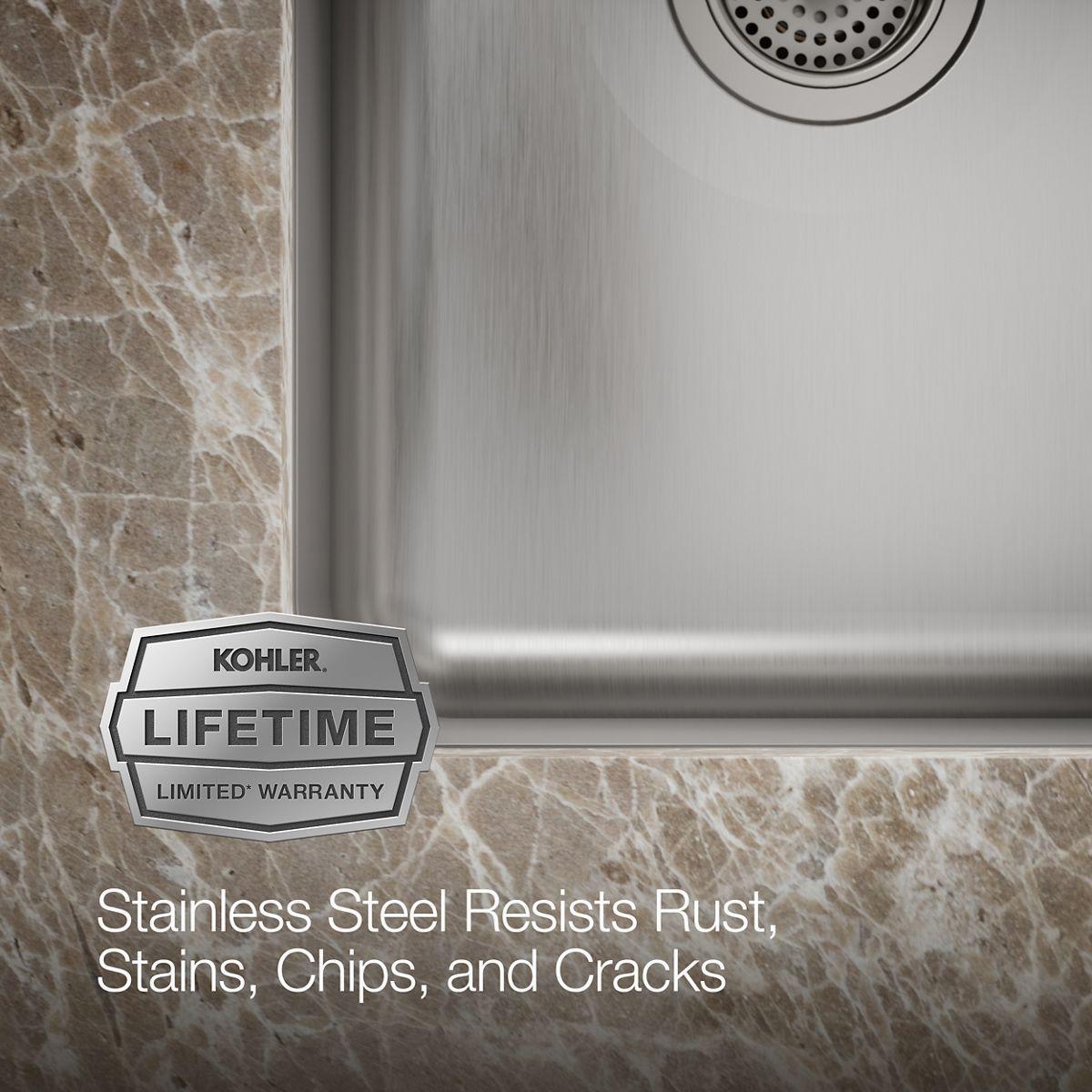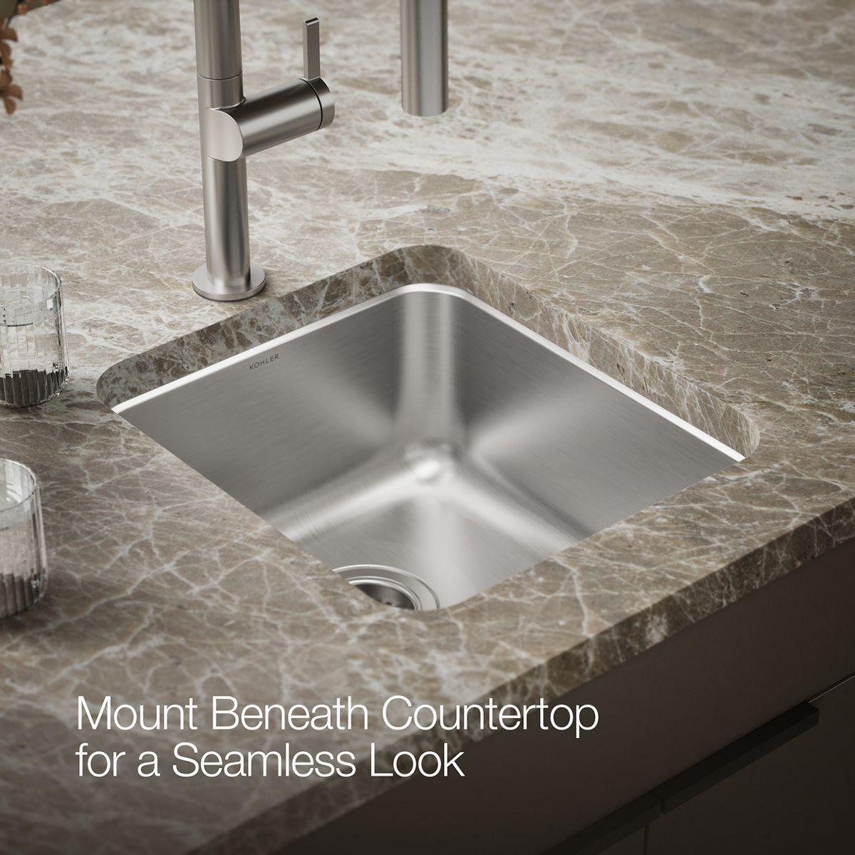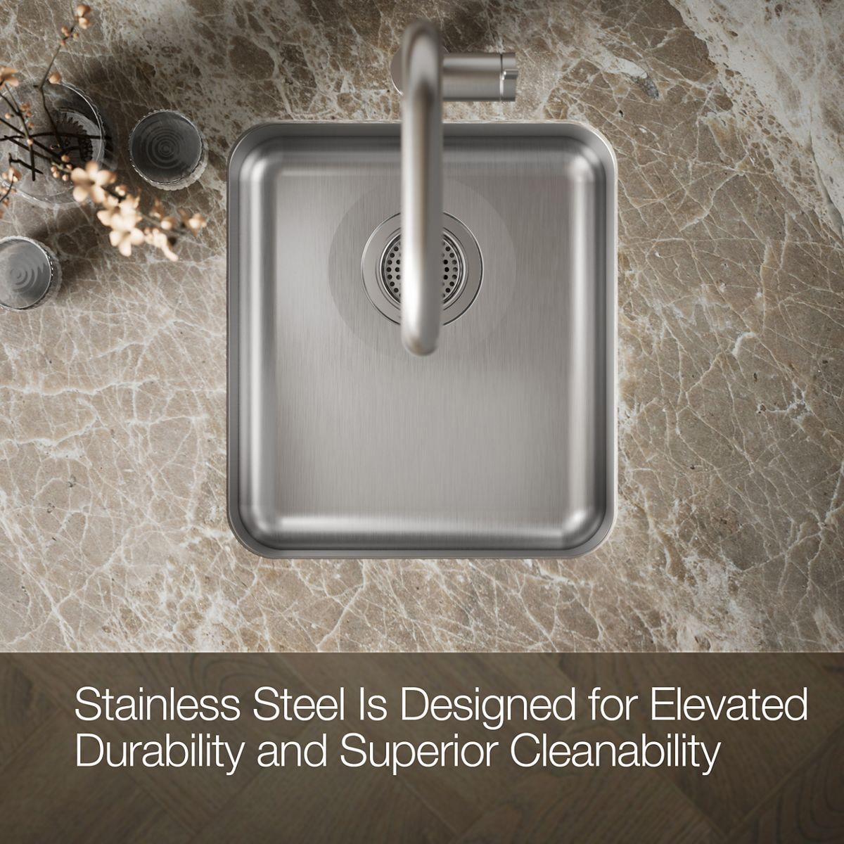 Bring understated style and professional polish to your kitchen with this contemporary Undertone sink. Constructed from durable stainless steel, the squared basin features engineered sound-absorption technology that significantly reduces disposal and dishwashing noise. A mirror-finish edge adds an elegant accent.