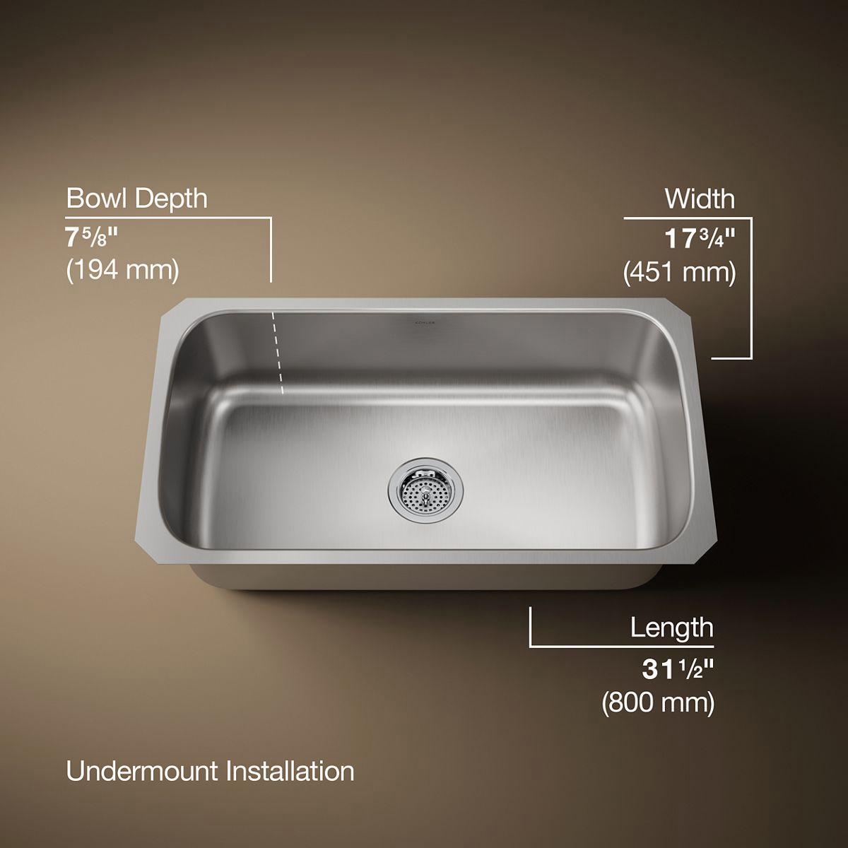 Undertone Trough 31-1/2" 1 Bowl Undermount Kitchen Sink - Stainless Steel 3183-NA Kohler