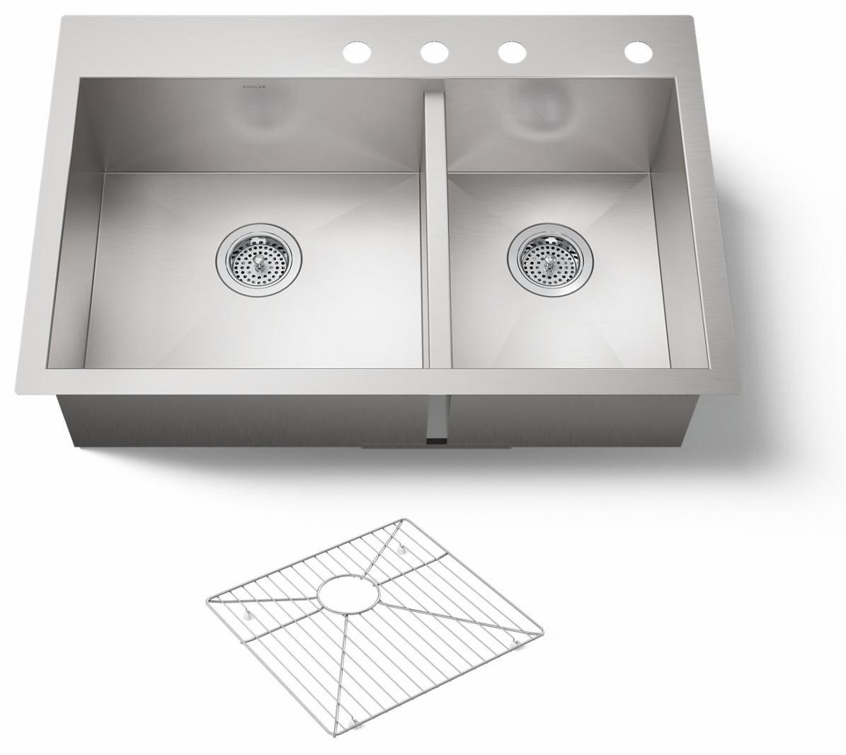 - Includes installation hardware and bottom sink rack.