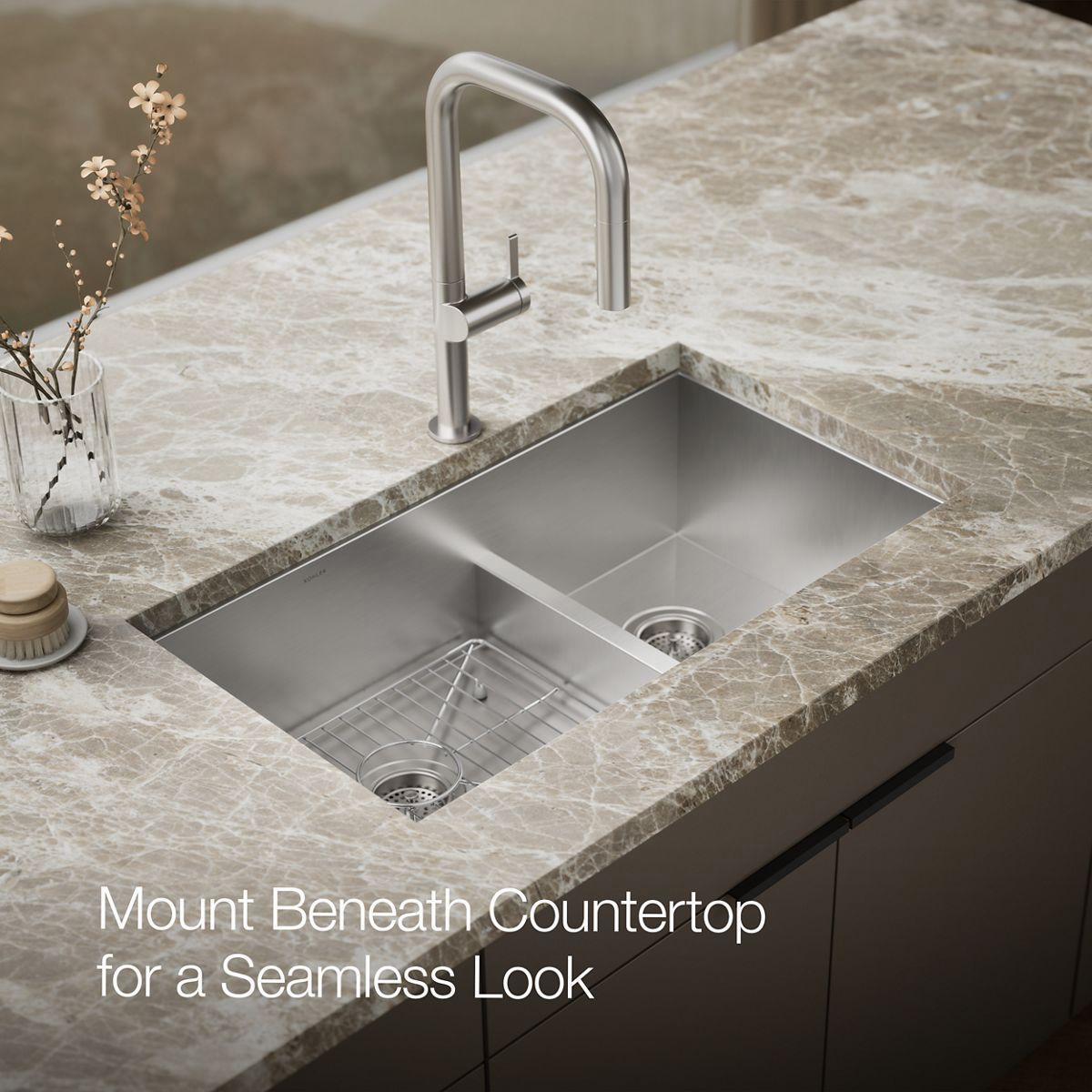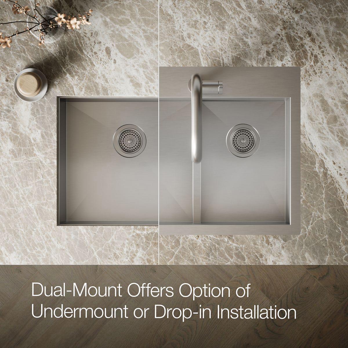 Vault 33" Smart Divide 1-Hole 1.75 Bowl Dual Mount Kitchen Sink - Stainless Steel 3839-1-NA Kohler