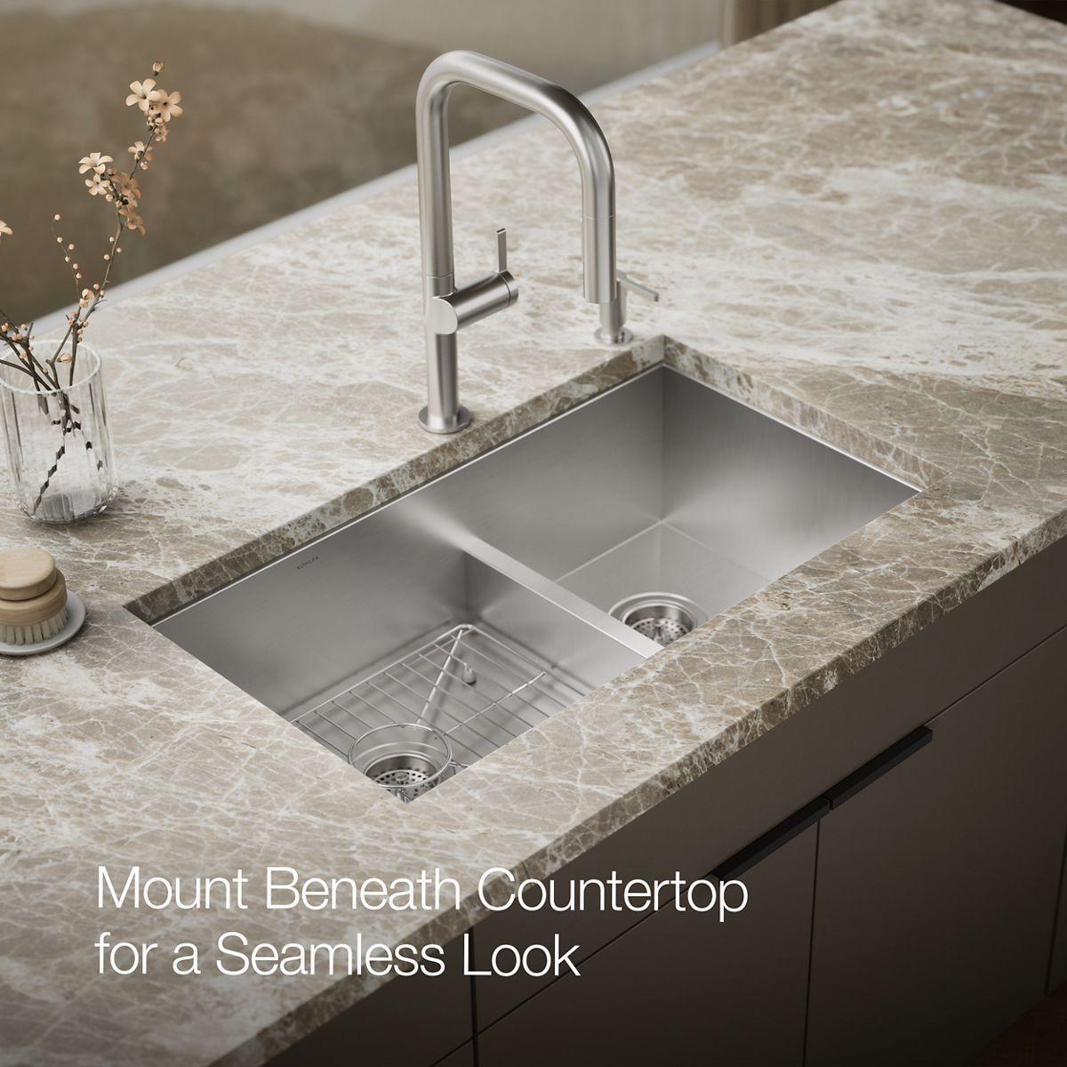 Vault 33" Smart Divide 4-Hole 1.75 Bowl Dual Mount Kitchen Sink - Stainless Steel 3839-4-NA Kohler