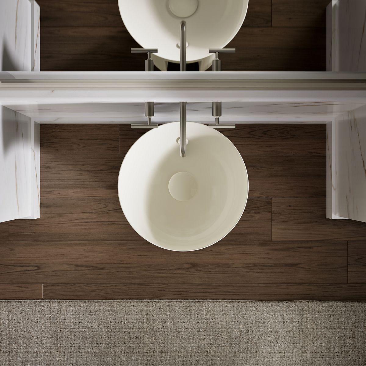 Veil's flowing and immaculately balanced curves evoke a sculpted simplicity in tune with contemporary style. Enhanced by a high-gloss finish, the sink's sleek, organic shape is easy to clean.
