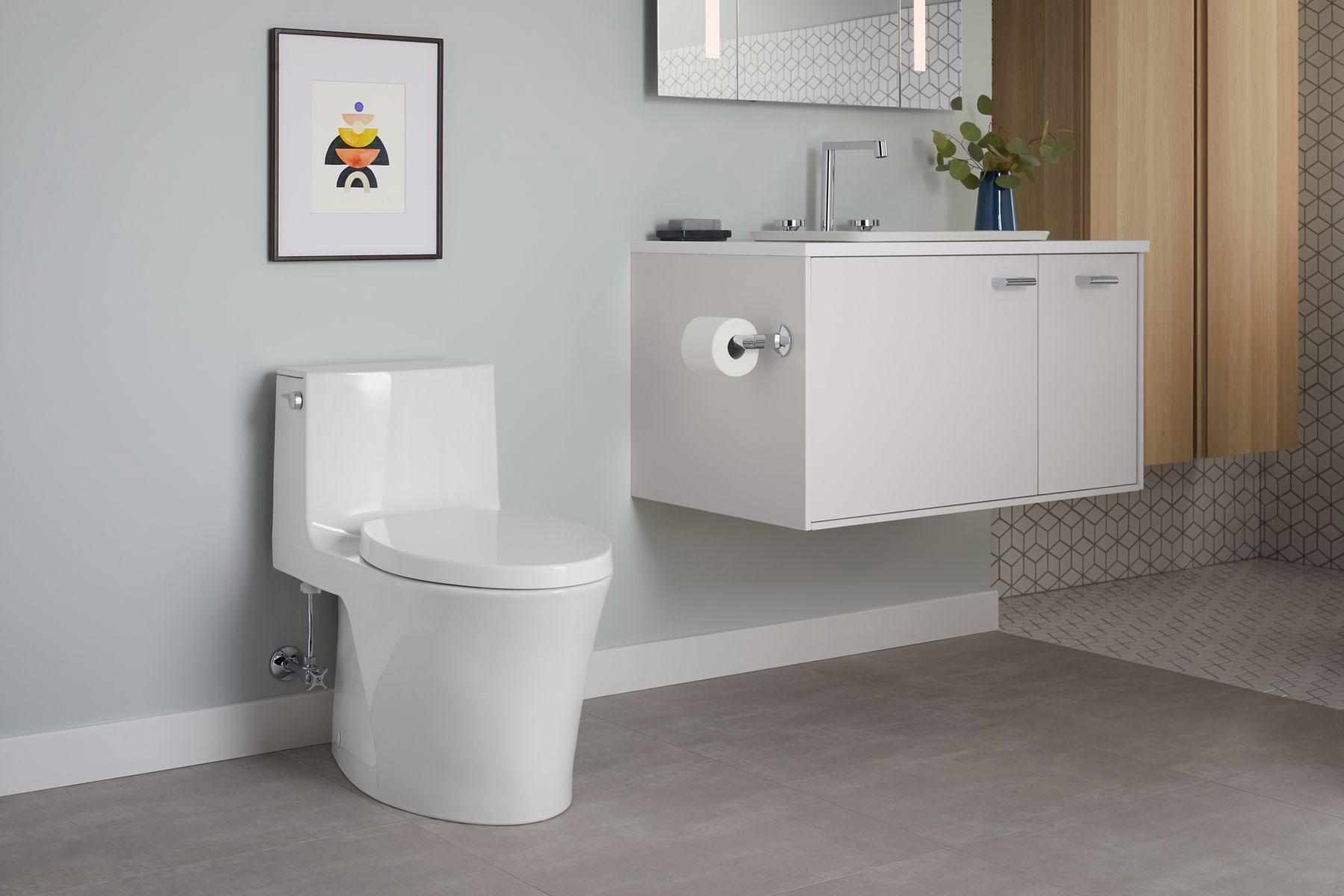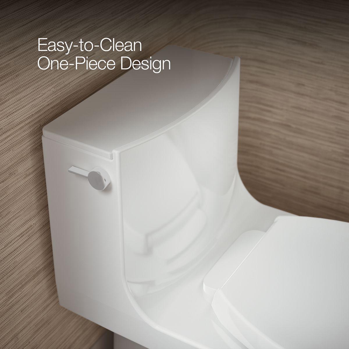 • One-piece toilets integrate the tank and bowl into a seamless, easy-to-clean design.