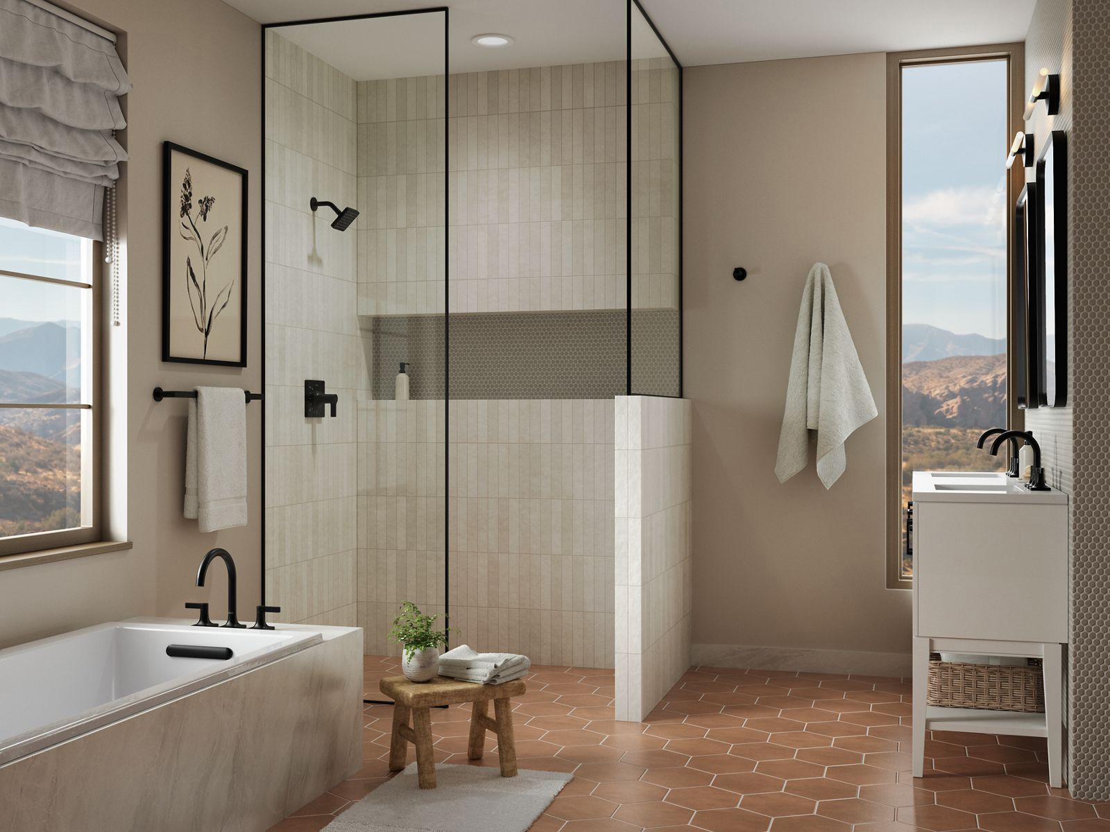Combining simple, architectural forms with sensual lines, the Venza bathroom faucet collection blends organic design elements with crisp, minimal geometry. This shower faucet set exemplifies the Venza collection’s contours. Pair this trim with a Rite-Temp pressure-balancing valve, which maintains your desired water temperature during pressure fluctuations.