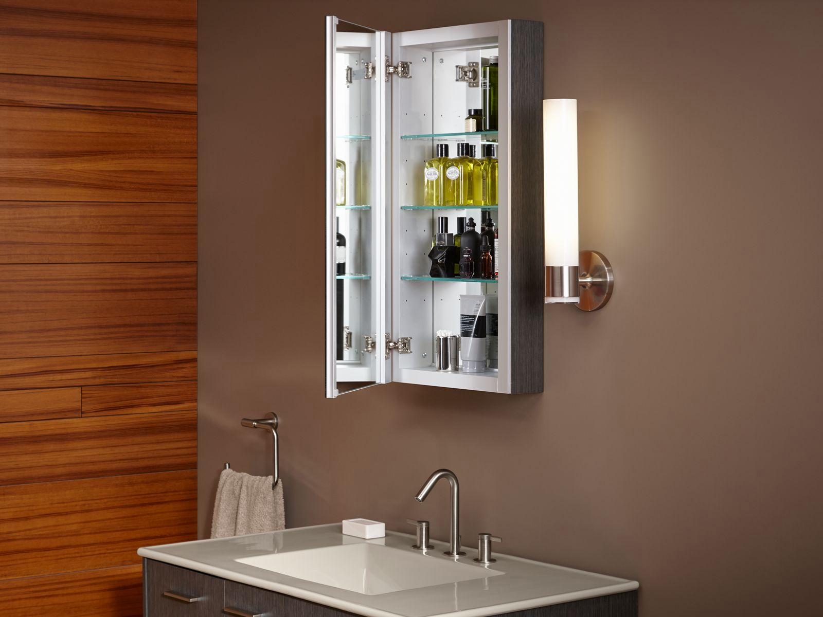 The Verdera medicine cabinet combines an elegant fit and finish with quick, easy installation. The door and interior are fully mirrored, and three adjustable glass shelves offer flexible storage of toiletries.