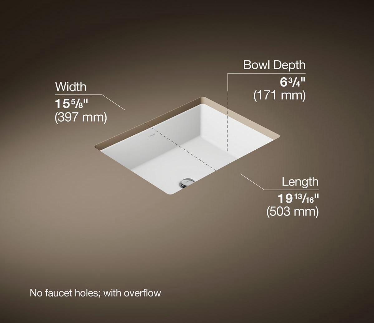 Verticyl Rectangle Undermount Bathroom Sink - White 2882-0 Kohler