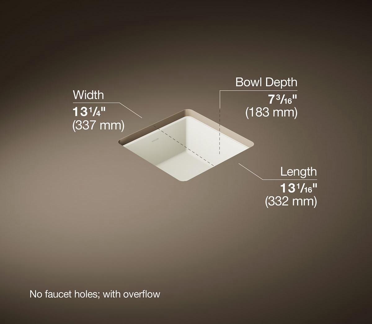- No faucet holes; requires wall- or counter-mount faucet.