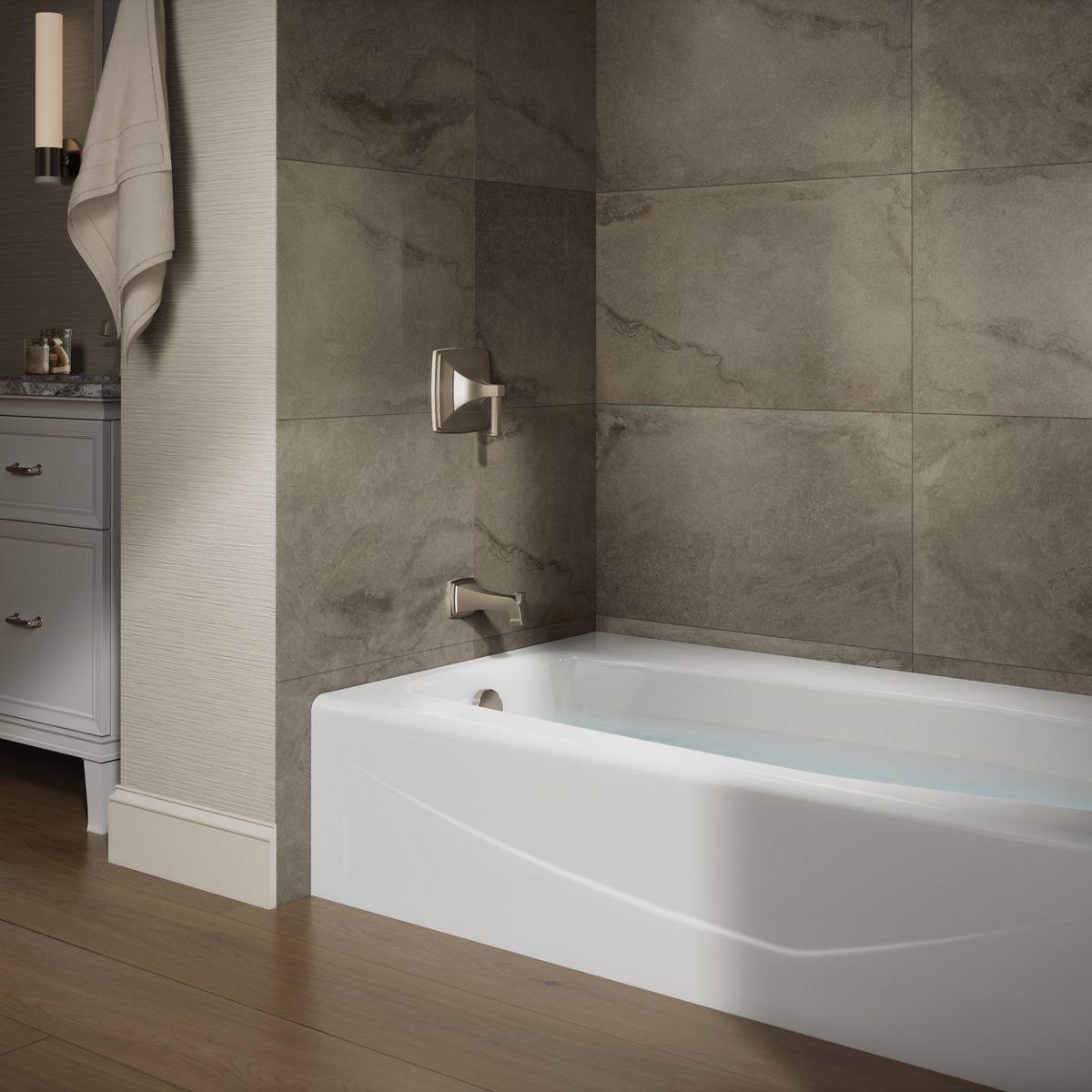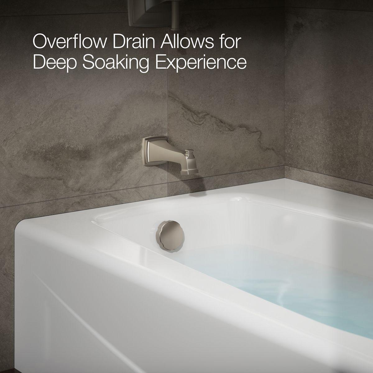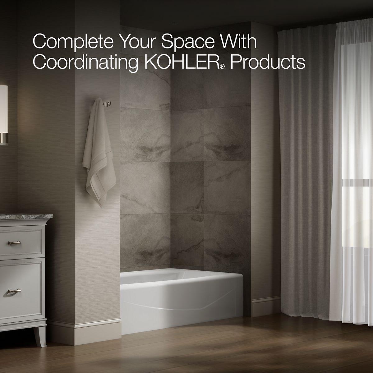 With its functional design and KOHLER styling, the Villager is our most popular bath. The integral apron allows for quick installation, and the bath's durable KOHLER(R) enameled cast iron construction ensures years of beauty and reliable performance. This model features a left-hand drain and an extra 4 ledge that provides room for bath supplies. Safeguard slip-resistant surface enhances safety.