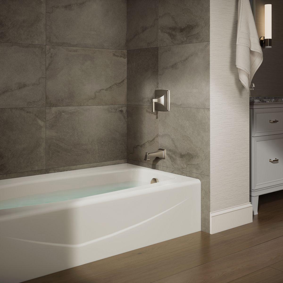 With its functional design and KOHLER styling, the Villager is our most popular bath. The integral apron allows for quick installation, and the bath's durable KOHLER(R) Cast Iron construction ensures years of beauty and reliable performance. This model features a right-hand drain and an extra 4 ledge that provides room for bath supplies. Safeguard slip-resistant surface enhances safety.
