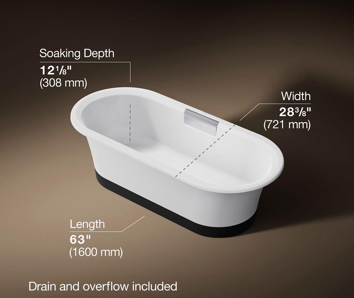 - 12-1/16" (306 mm) deep-soaking depth provides a luxurious bathing experience