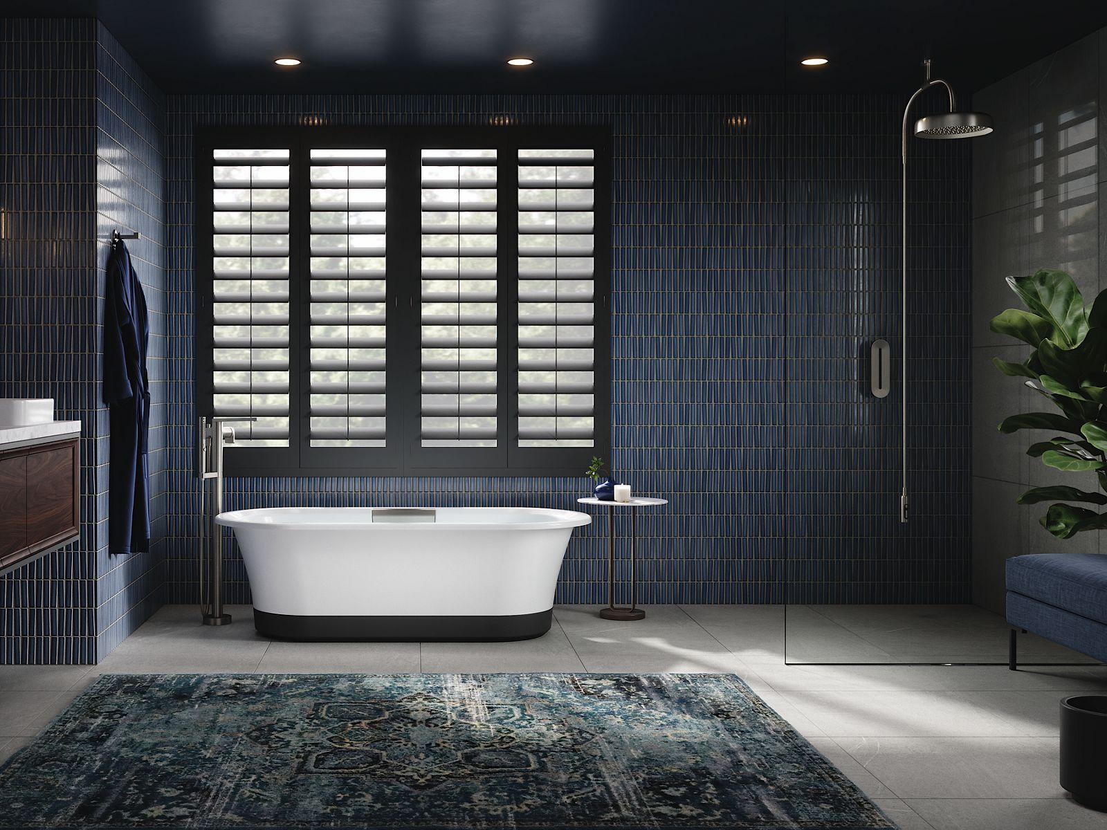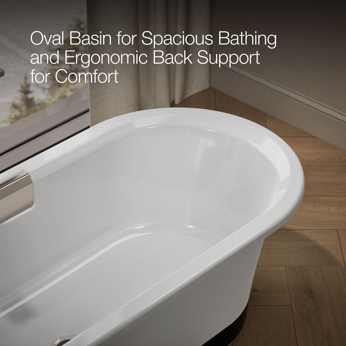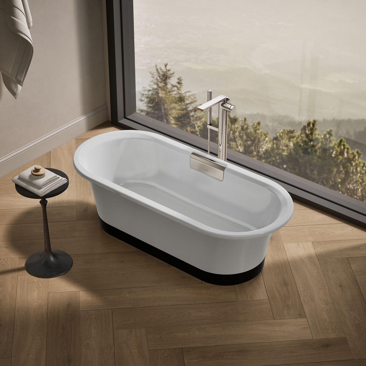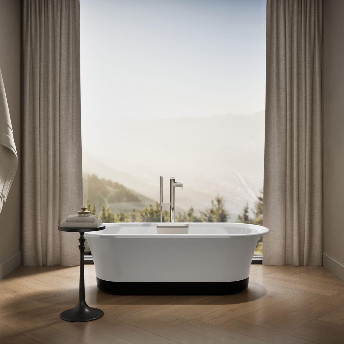 The Volute freestanding bath collection is a contemporary take on the classic charm of KOHLER enameled cast iron. Designed to make an enduring statement of beauty, KOHLER enameled cast iron is scratch- and stain-resistant. The modern lines of the collection’s design combine with the timeless allure of the cast iron to create an unforgettable look in any bathing space. Available in two shapes and as many sizes, the Volute freestanding bath collection also offers you the choice of a shroud or bath base in black or white. And because Volute baths are manufactured with the drain and overflow preinstalled, they are less complicated to set up. To complete your bath, K-36361 drain trim kits are available in several finishes to coordinate with KOHLER bathroom faucets and accessories.