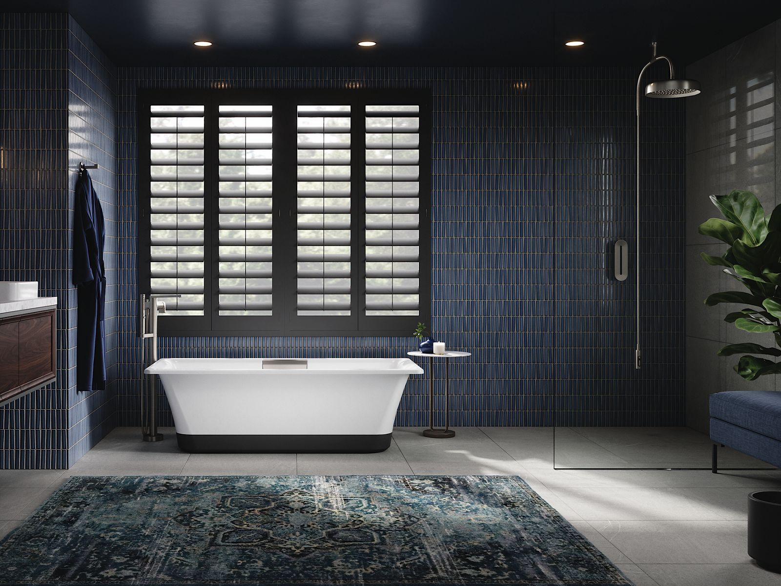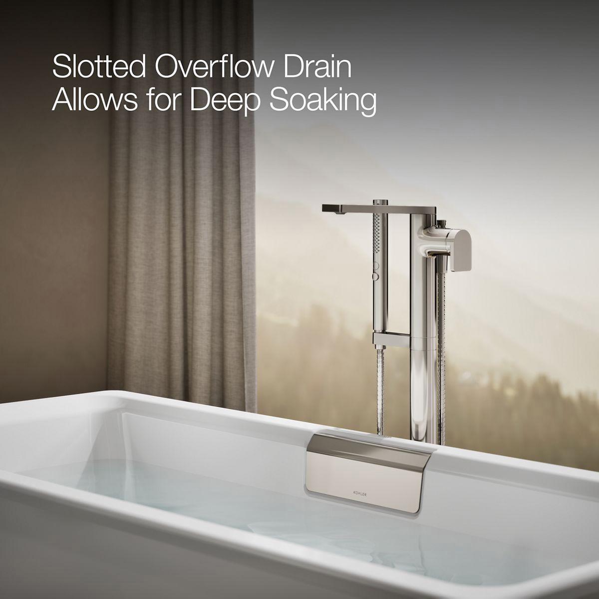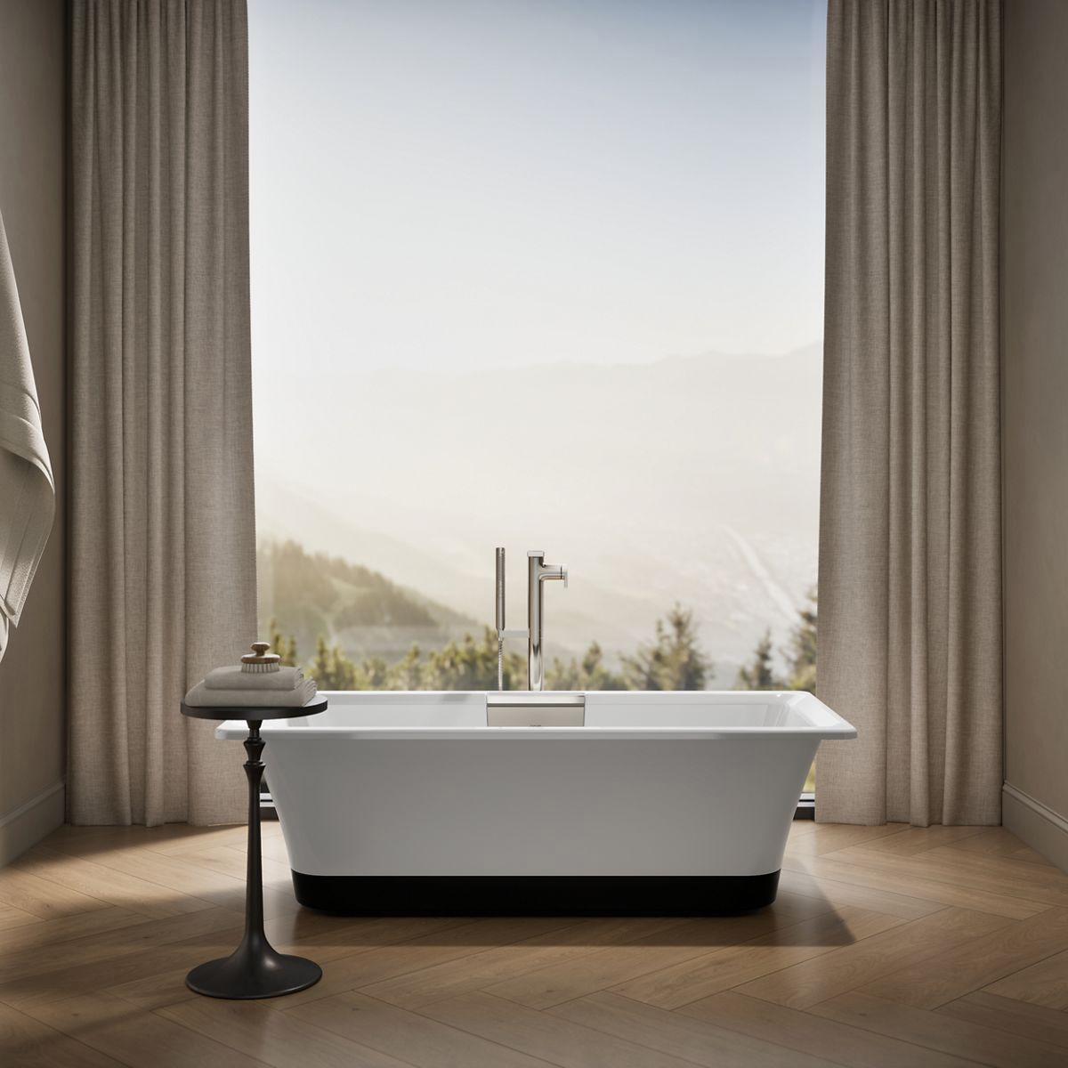The Volute freestanding bath collection is a contemporary take on the classic charm of KOHLER enameled cast iron. Designed to make an enduring statement of beauty, KOHLER enameled cast iron is scratch- and stain-resistant. The modern lines of the collection’s design combine with the timeless allure of the cast iron to create an unforgettable look in any bathing space. Available in two shapes and as many sizes, the Volute freestanding bath collection also offers you the choice of a shroud or bath base in black or white. And because Volute baths are manufactured with the drain and overflow preinstalled, they are less complicated to set up. To complete your bath, K-36361 drain trim kits are available in several finishes to coordinate with KOHLER bathroom faucets and accessories.