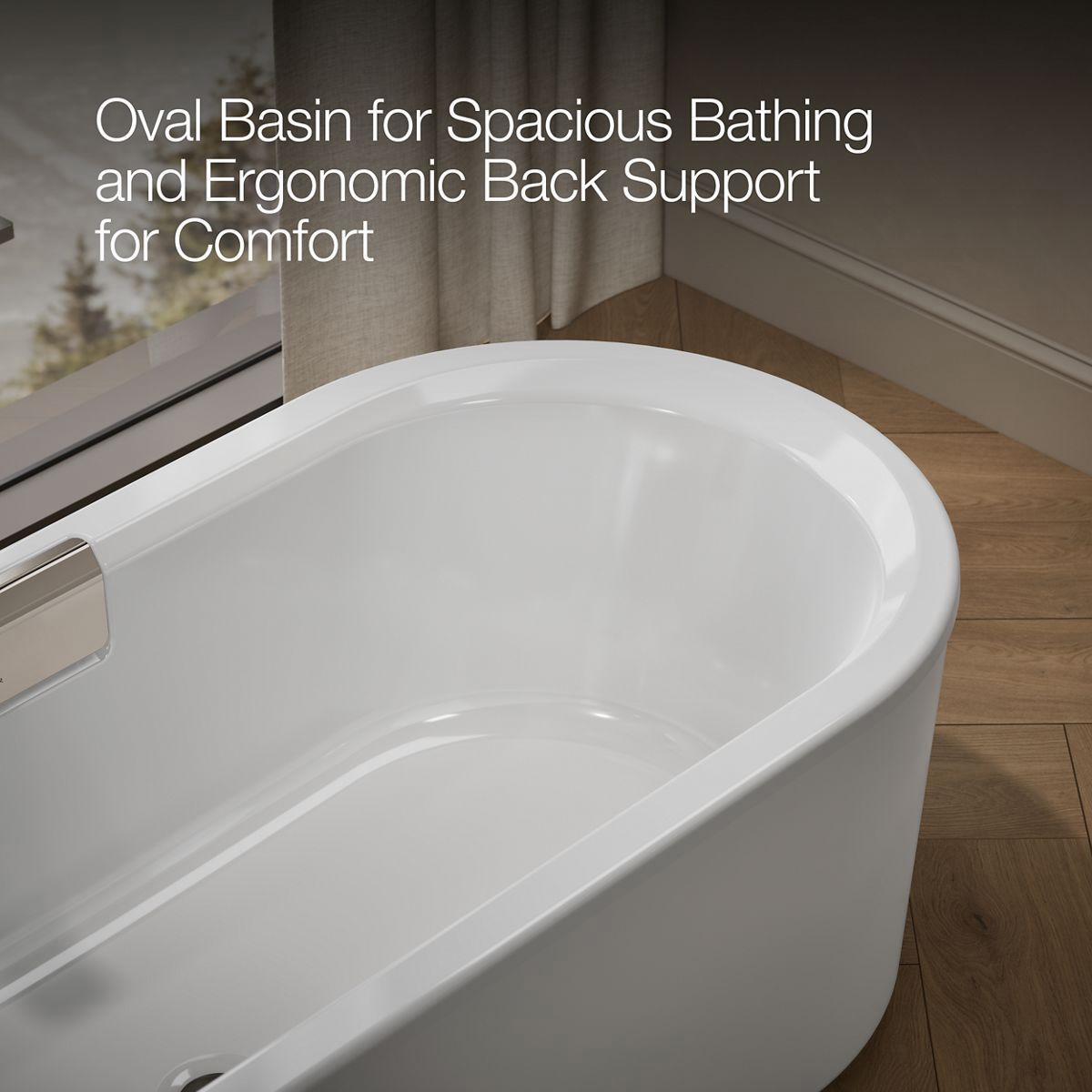 - Oval basin creates a spacious bathing experience