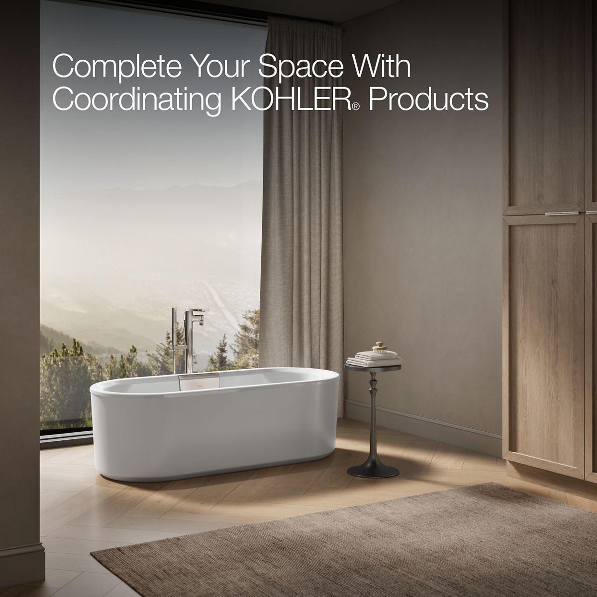 The Volute freestanding bath collection is a contemporary take on the classic charm of KOHLER enameled cast iron. Designed to make an enduring statement of beauty, KOHLER enameled cast iron is scratch- and stain-resistant. The modern lines of the collection’s design combine with the timeless allure of the cast iron to create an unforgettable look in any bathing space. Available in two shapes and as many sizes, the Volute freestanding bath collection also offers you the choice of a shroud or bath base in black or white. And because Volute baths are manufactured with the drain and overflow preinstalled, they are less complicated to set up. To complete your bath, K-36361 drain trim kits are available in several finishes to coordinate with KOHLER bathroom faucets and accessories.