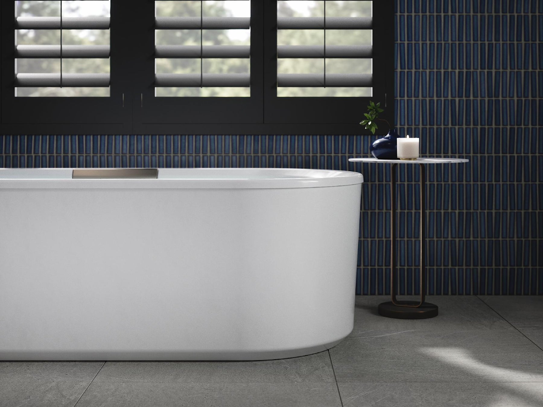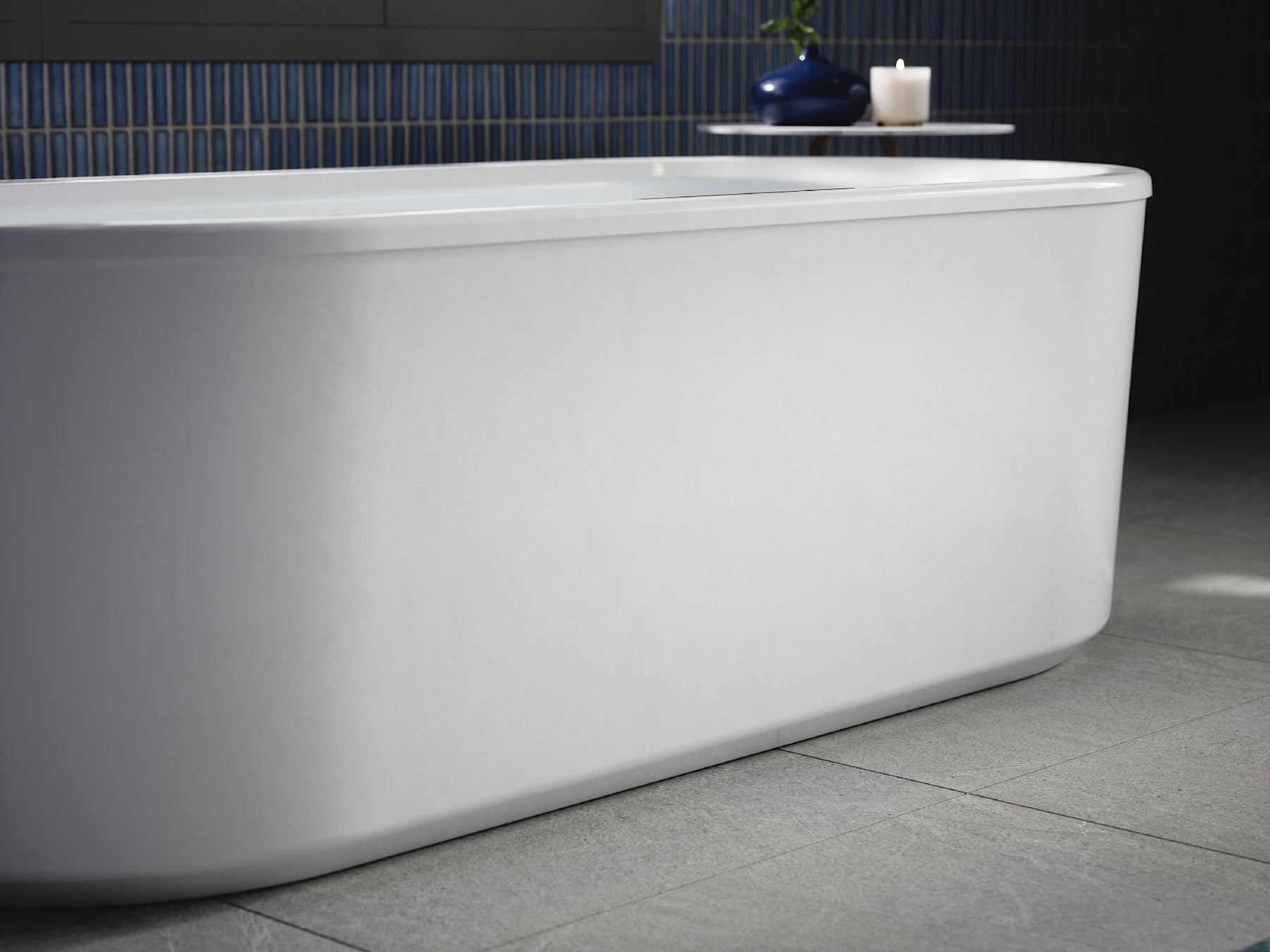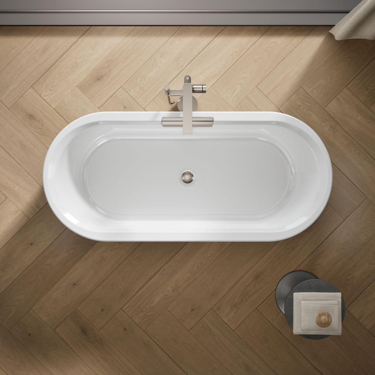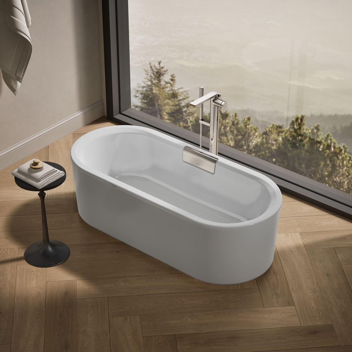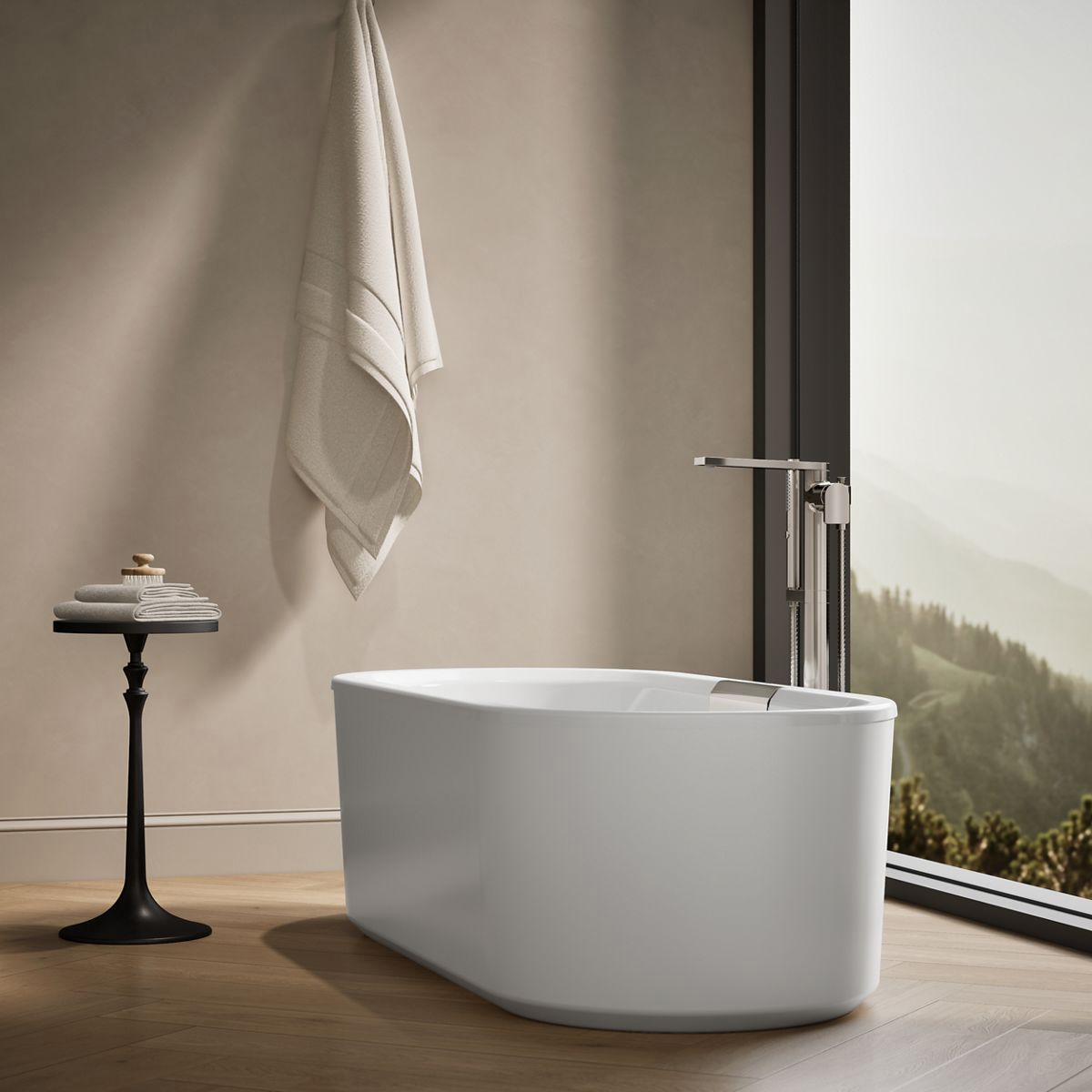 - Freestanding design creates a striking focal point in your bathing area