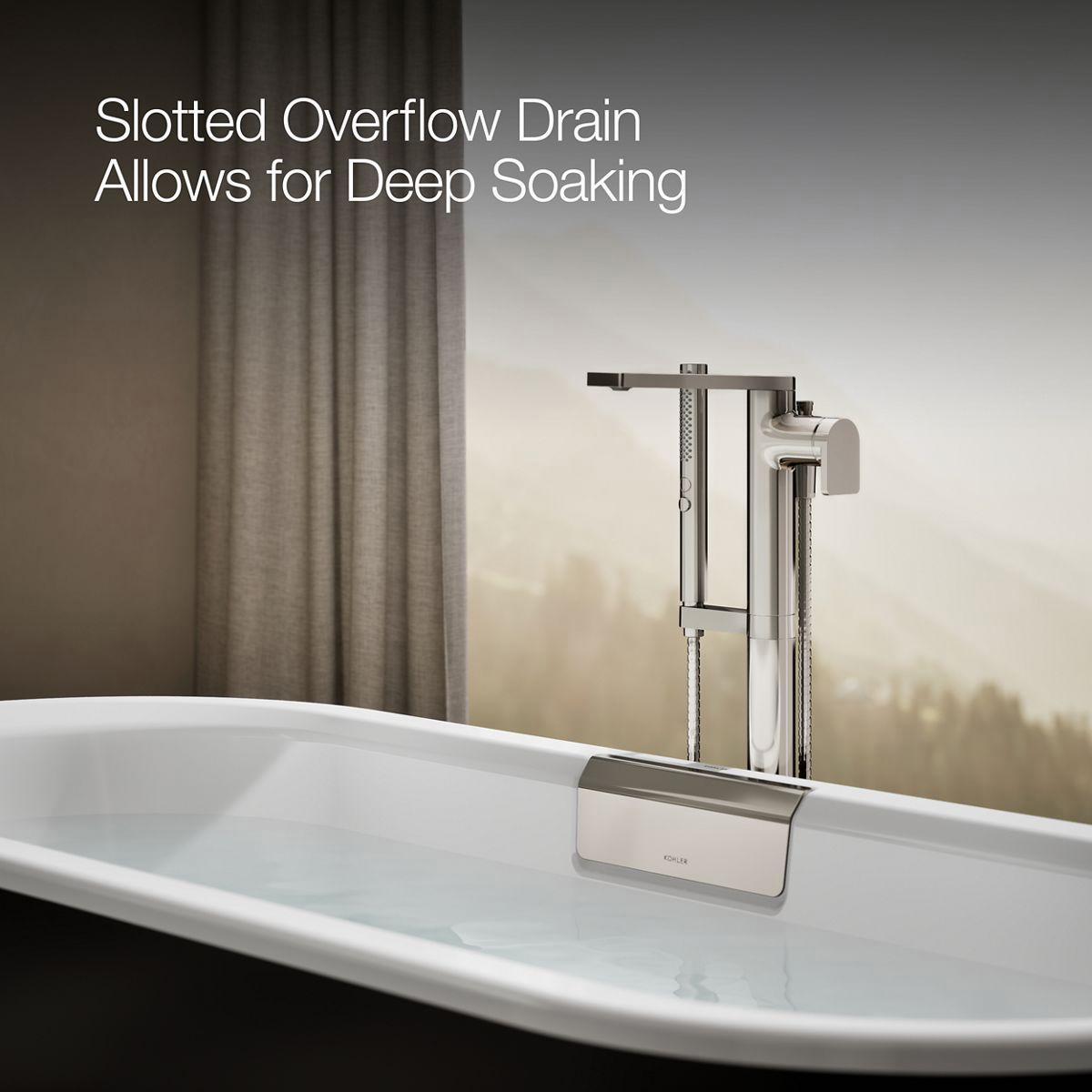 The Volute freestanding bath collection is a contemporary take on the classic charm of KOHLER enameled cast iron. Designed to make an enduring statement of beauty, KOHLER enameled cast iron is scratch- and stain-resistant. The modern lines of the collection’s design combine with the timeless allure of the cast iron to create an unforgettable look in any bathing space. Available in two shapes and as many sizes, the Volute freestanding bath collection also offers you the choice of a shroud or bath base in black or white. And because Volute baths are manufactured with the drain and overflow preinstalled, they are less complicated to set up. To complete your bath, K-36361 drain trim kits are available in several finishes to coordinate with KOHLER bathroom faucets and accessories.