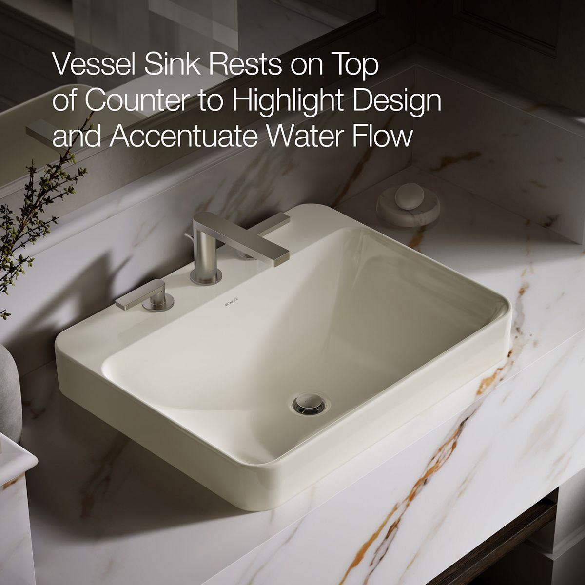 Sleek and contemporary, the Vox Rectangle vessel-style sink features a wide, deep basin and rounded edges in true minimalist fashion. Countertop installation ensures this sink will stand out in your bathroom as a striking focal point.