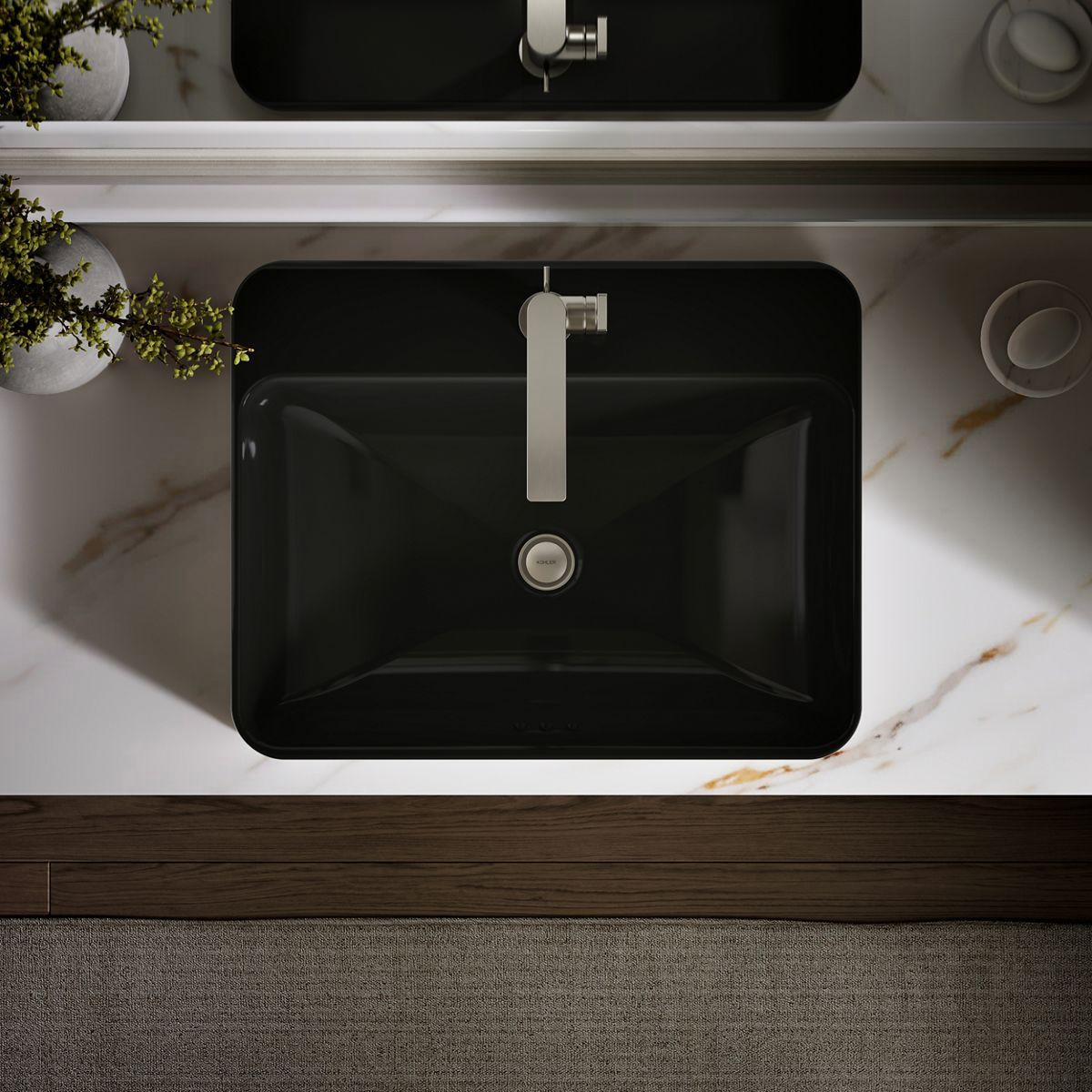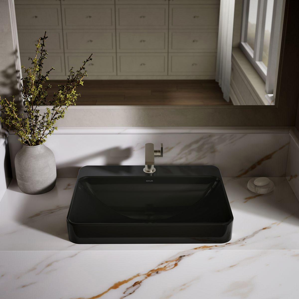 Sleek and contemporary, the Vox Rectangle vessel-style sink features a wide, shallow basin and rounded edges in true minimalist fashion. Countertop installation ensures this sink will stand out in your bathroom as a striking focal point.