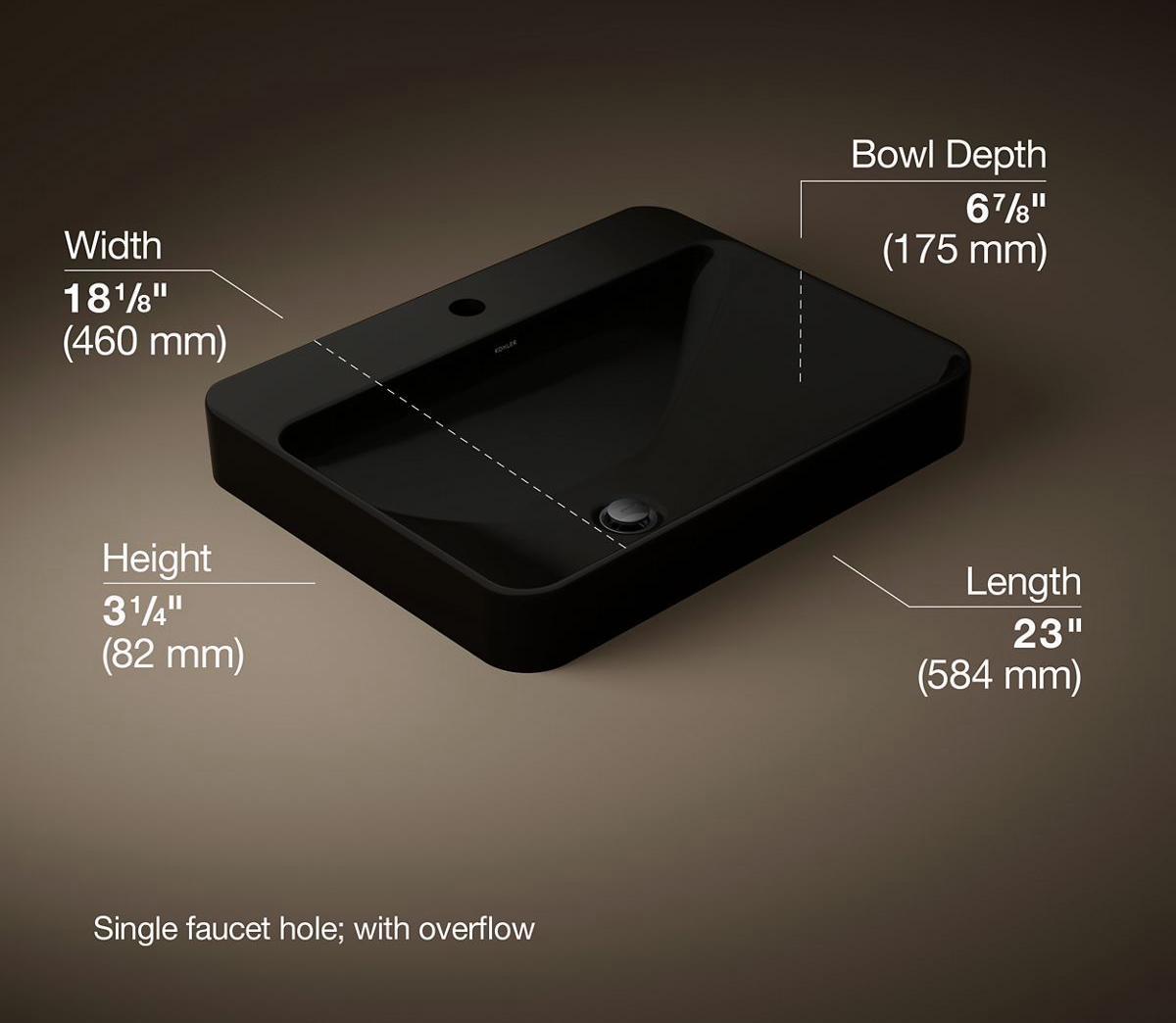 - 23" (584 mm) x 18-1/8" (460 mm)
