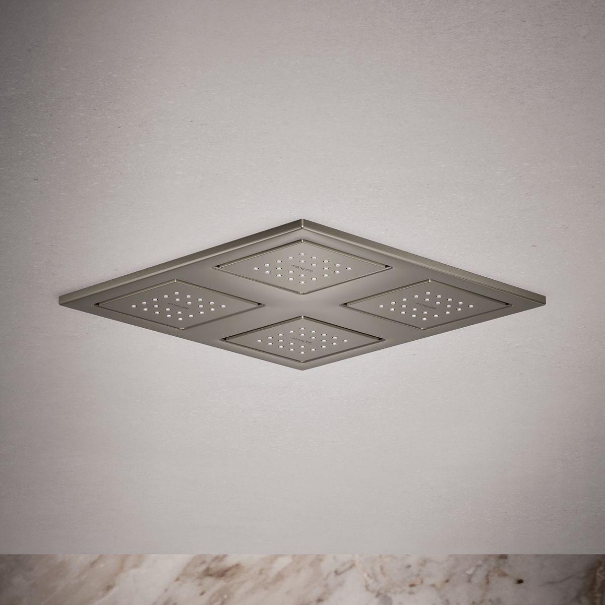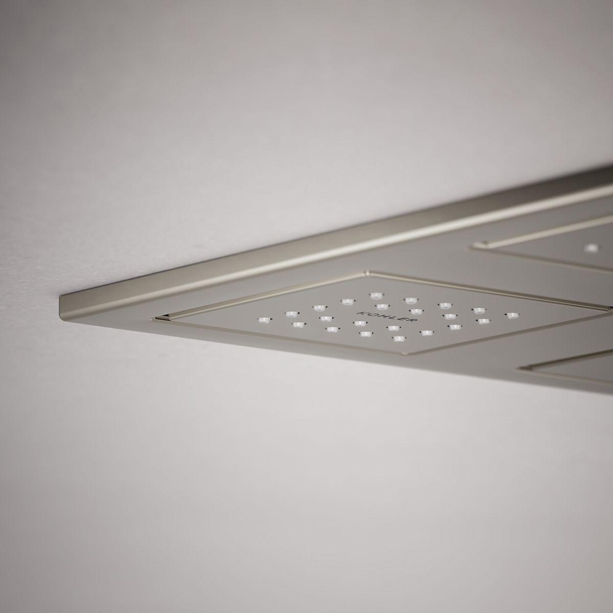 With four 22-nozzle sprayheads, WaterTile Square Rain overhead showering panels provide luxurious water delivery that even Mother Nature would envy. Four fully adjustable and pivoting square sprayheads distribute a relaxing shower of water that simulates a gentle summer rain.