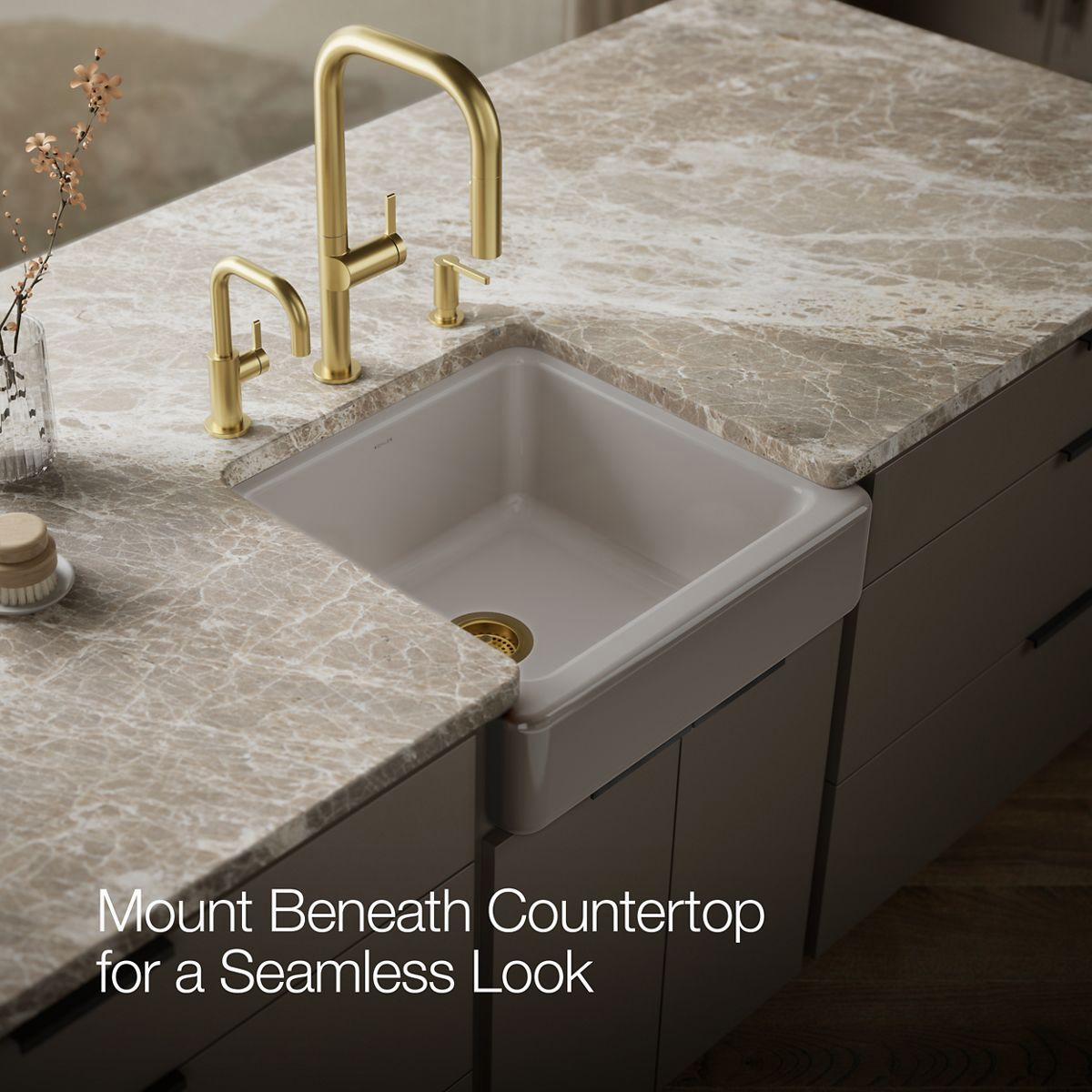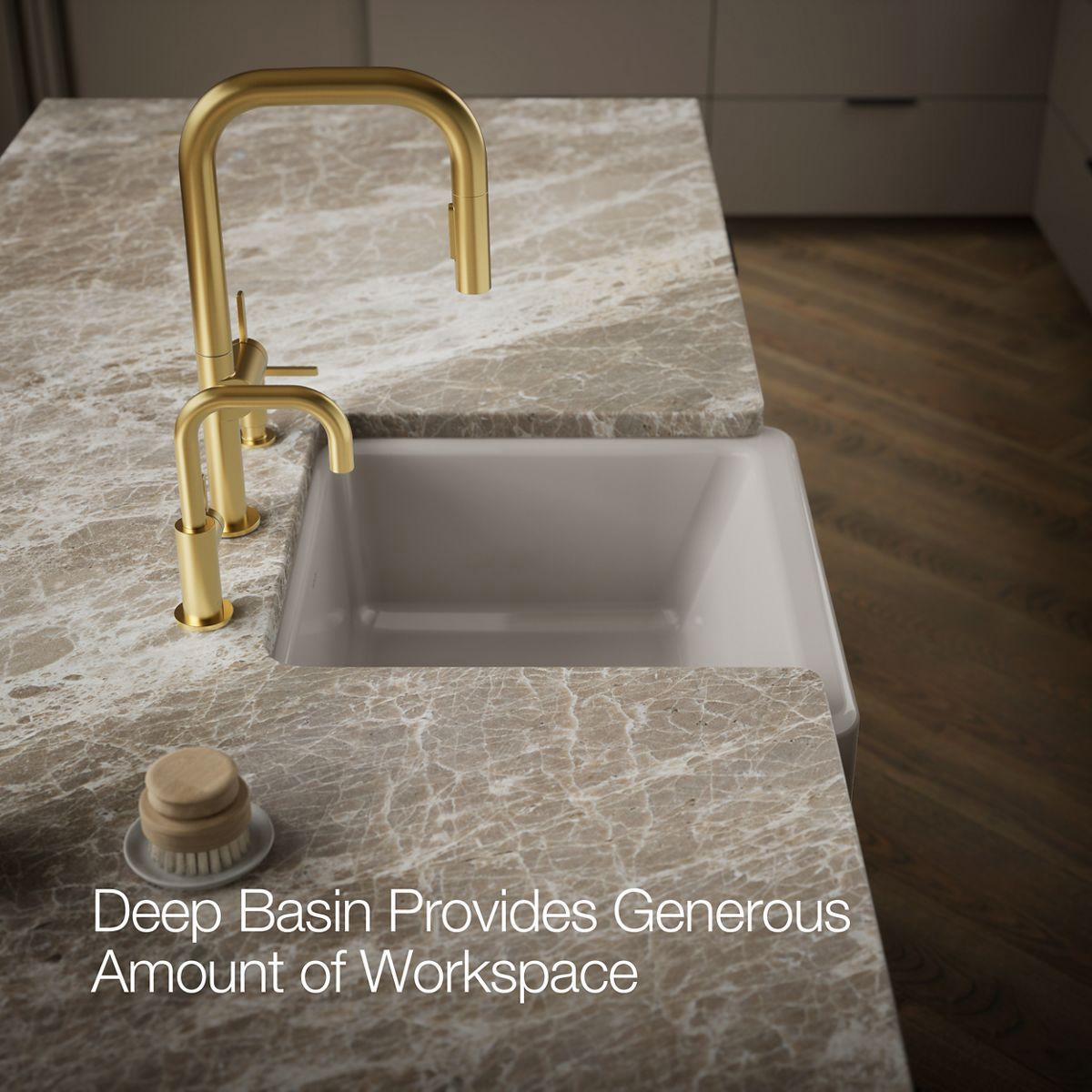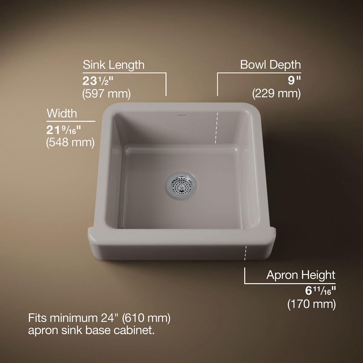 - Shortened apron allows sink to be used in most standard cabinetry or retrofitted to existing standard cabinetry