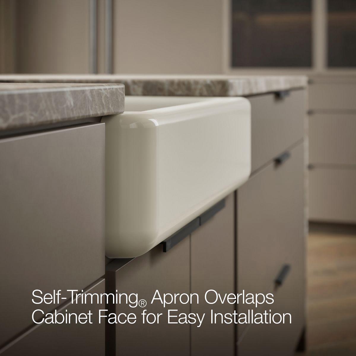 - Self-Trimming® apron overlaps cabinet face for easy installation and beautiful results.