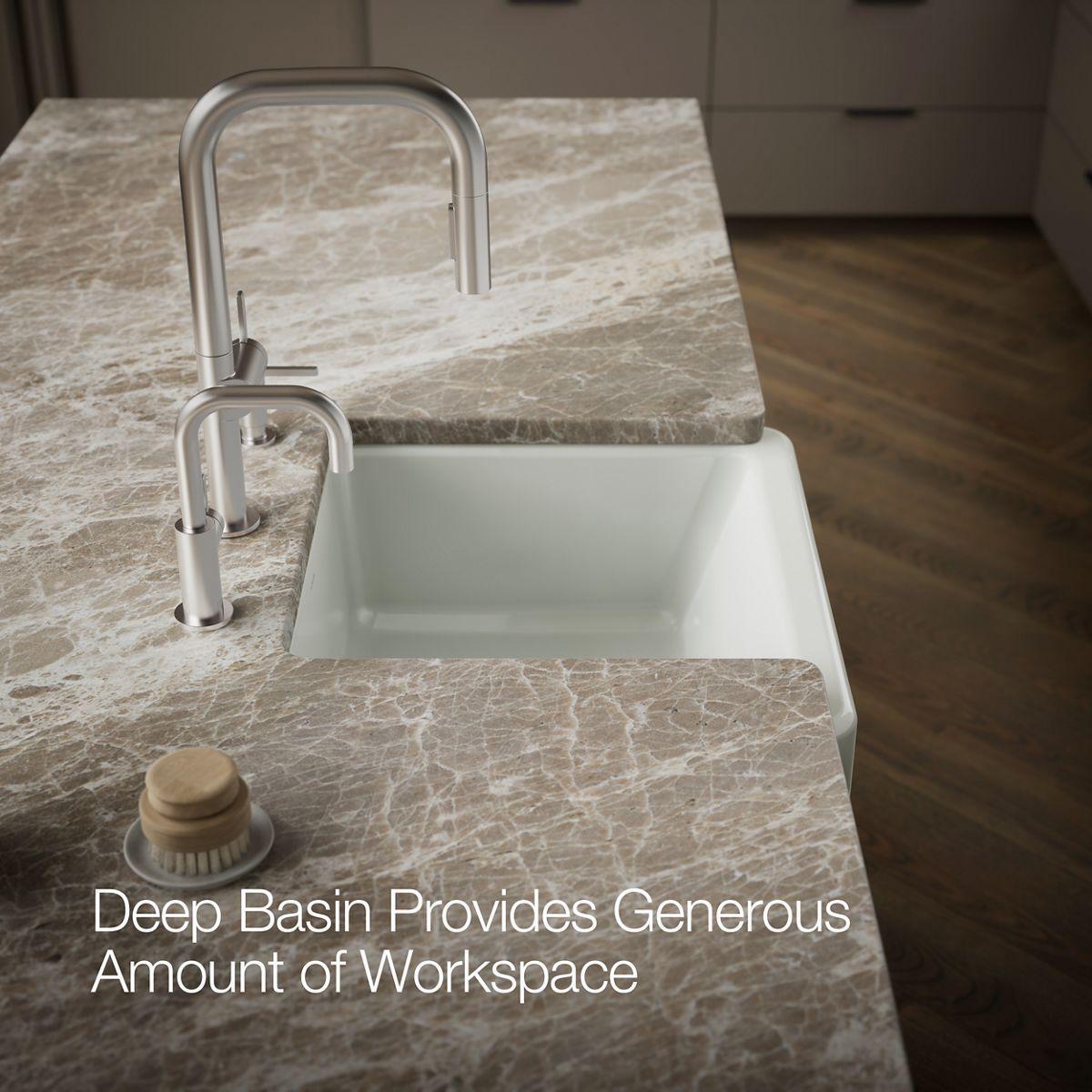 - Fits minimum 24" (610 mm) apron sink base cabinet.