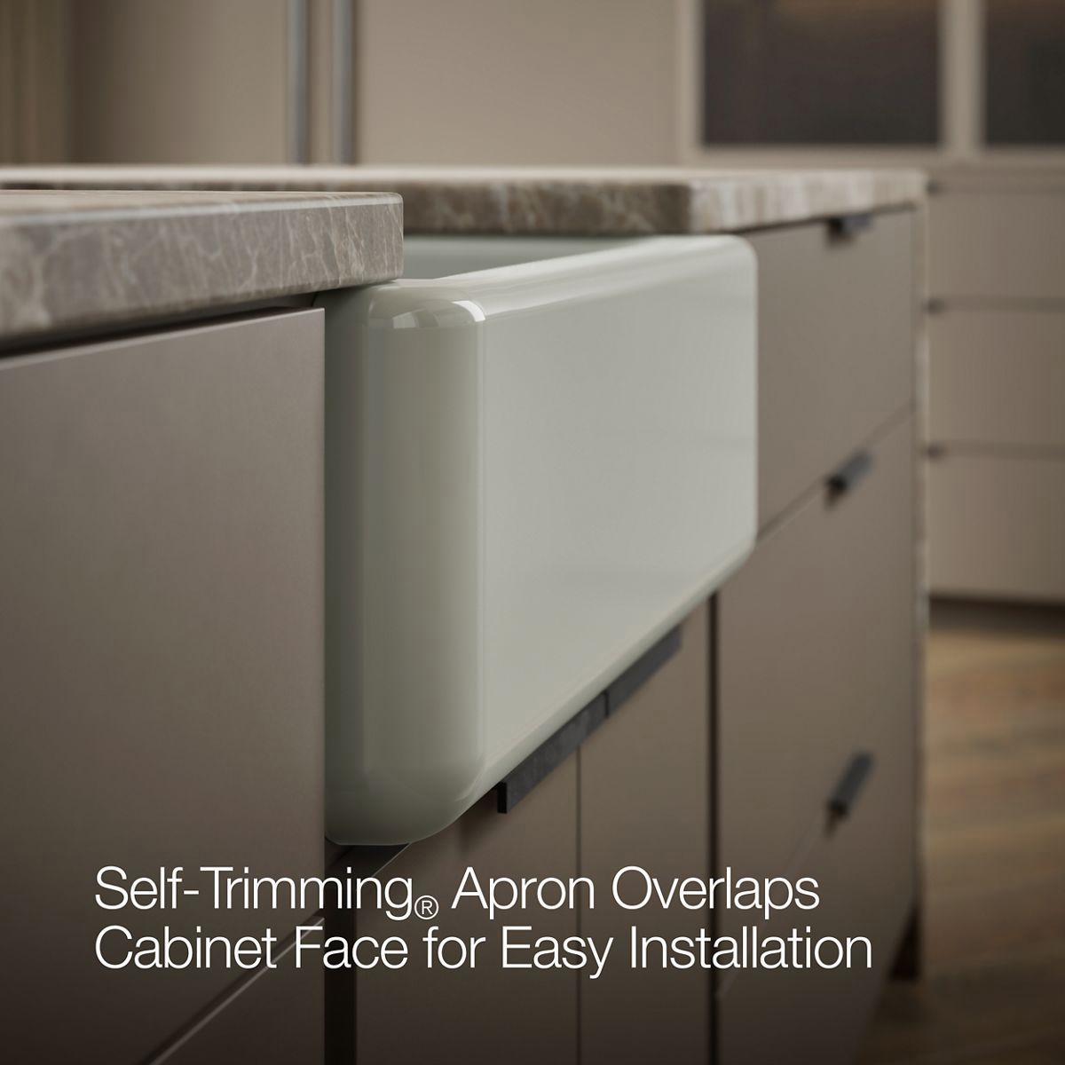 - Self-Trimming® apron overlaps cabinet face for easy installation and beautiful results.
