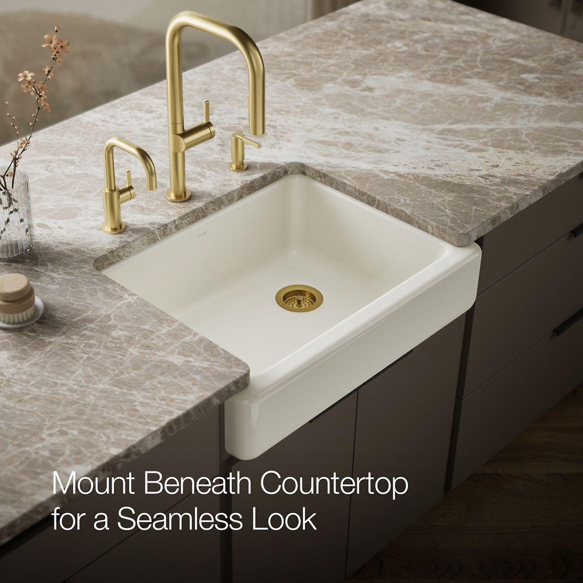 - Short 6-11/16" (170 mm) apron allows sink to be used in new or existing standard cabinetry.