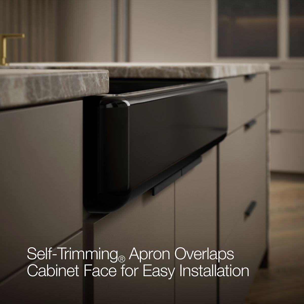 - Self-Trimming® apron overlaps cabinet face for easy installation and beautiful results.