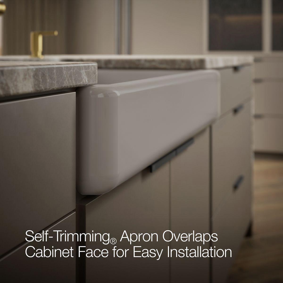 - Self-Trimming® apron overlaps cabinet face for easy installation and beautiful results