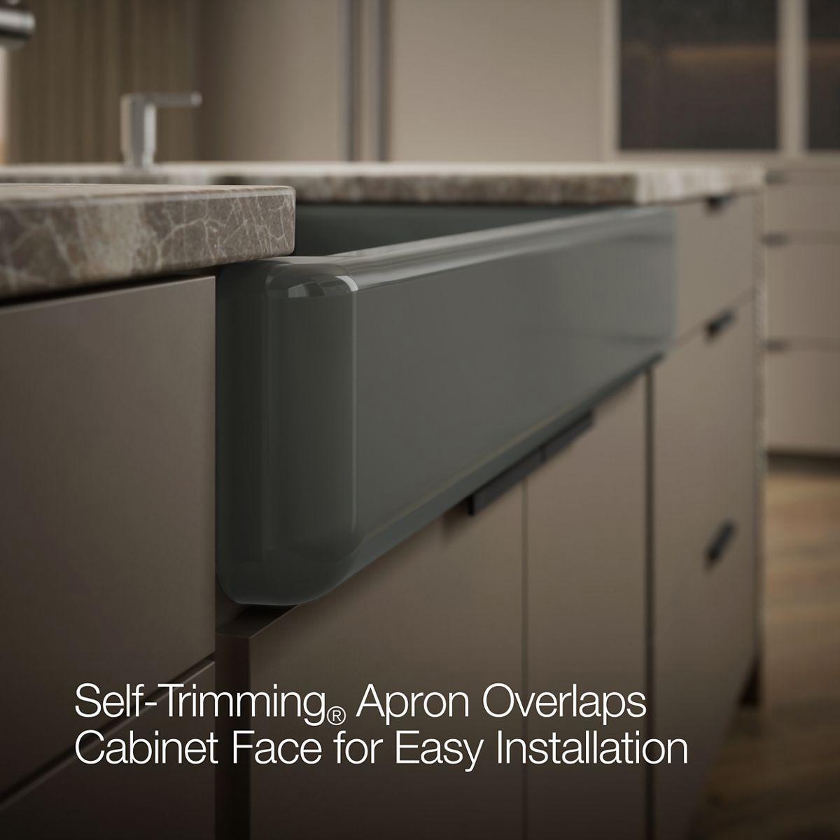 - Self-Trimming® apron overlaps cabinet face for easy installation and beautiful results.